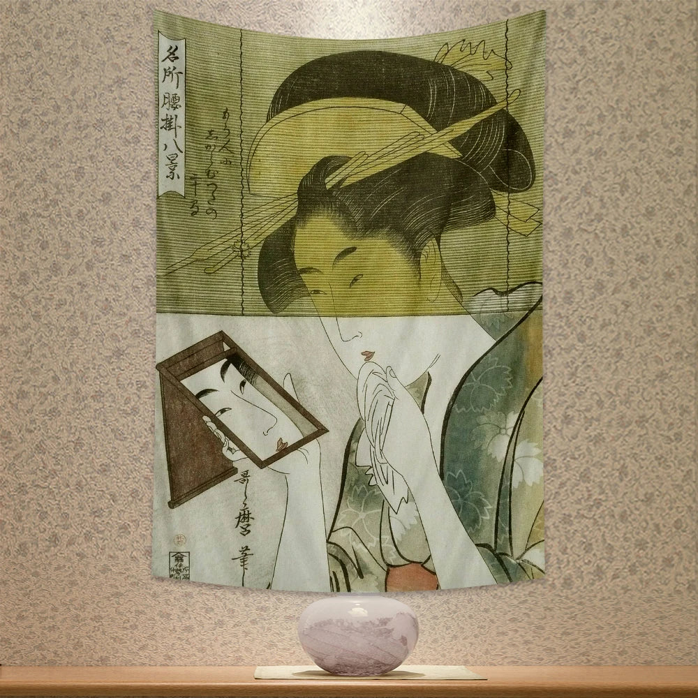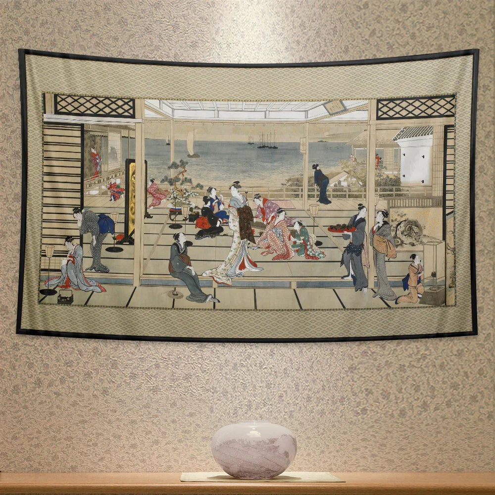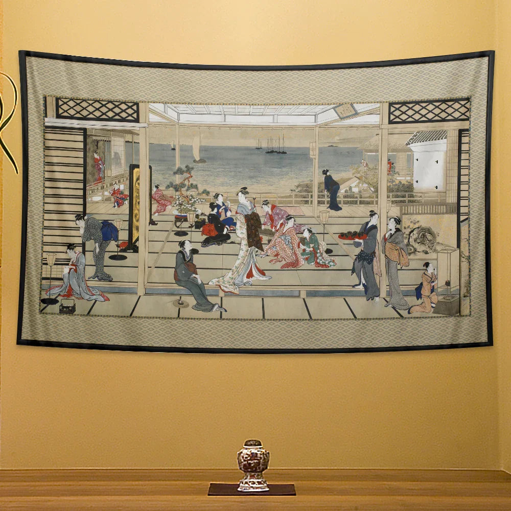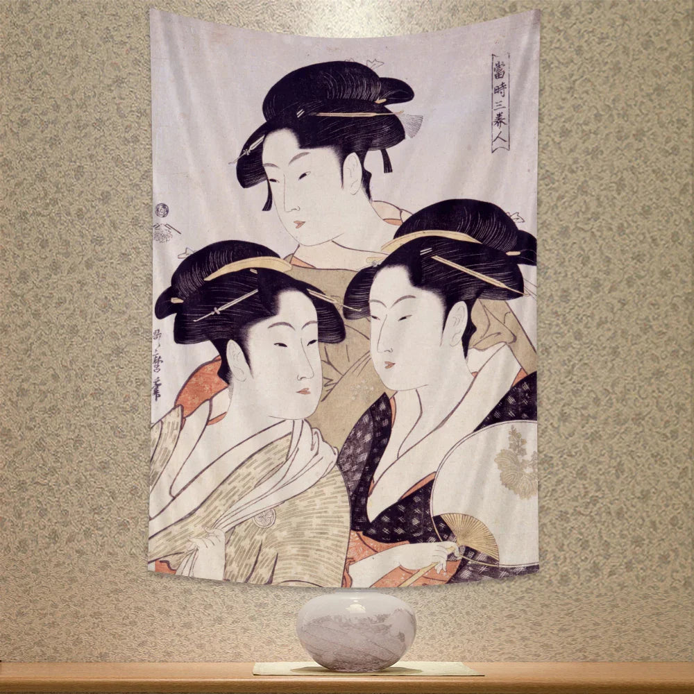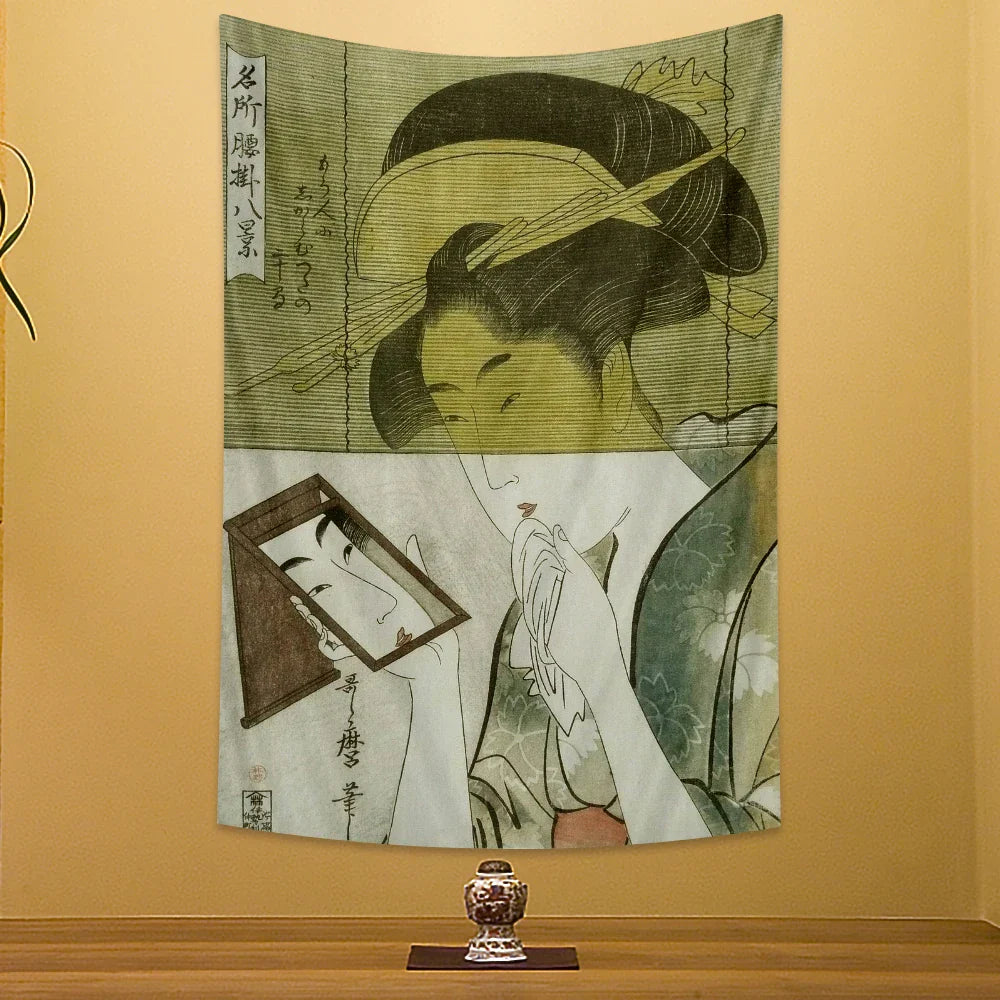 ديكور بايتس™ - لوحة جدارية مطبوعة لجيشا كاناغاوا لديكور المنزل البوهيمي وسجادة اليوجا