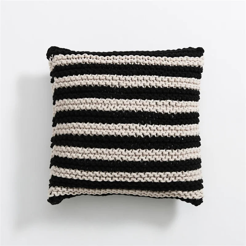 وسادة مربعة منسوجة مخططة من ديكور بايتس™، مقاس 45×45 سم، مع حشوات باللون الأسود العاجي