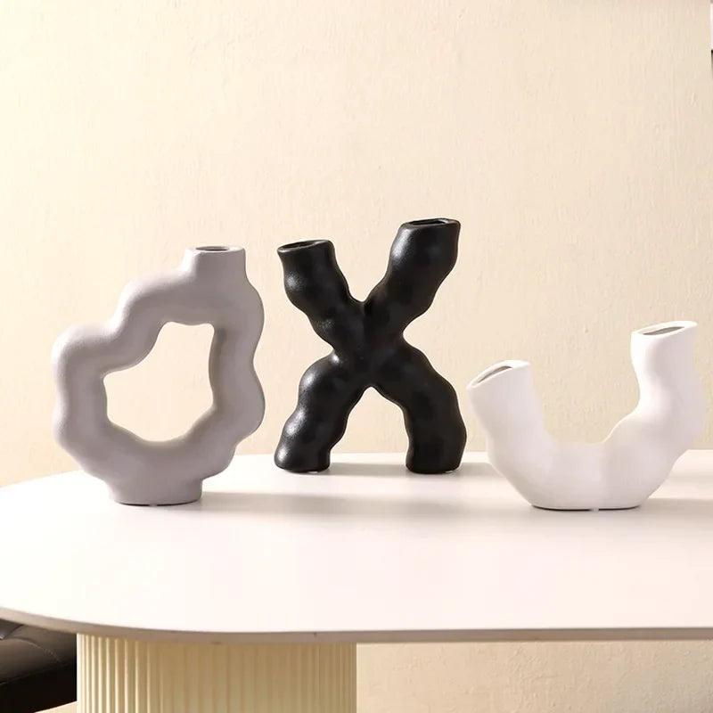 مزهرية زهور سيراميكية هندسية من DecorBites™ لديكور منزلي أنيق وتنسيق الزهور