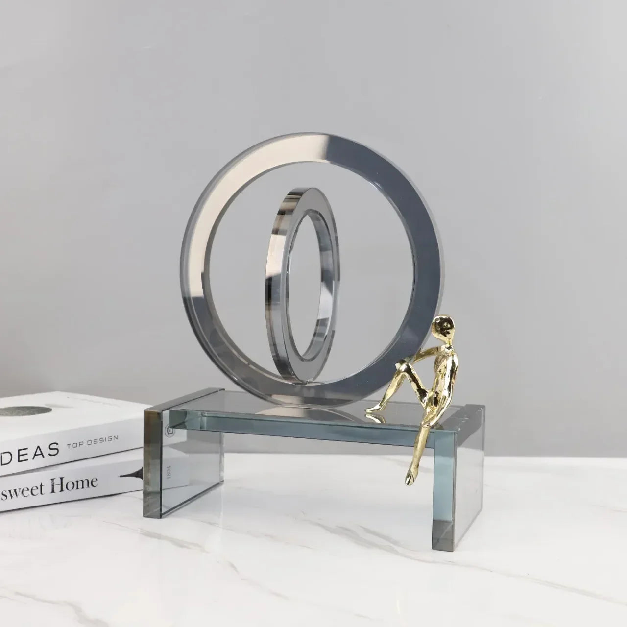 ديكور بايتس™ حلقات كريستال هندسية، زينة الرجل الذهبي، تماثيل زجاجية، ديكور منزلي