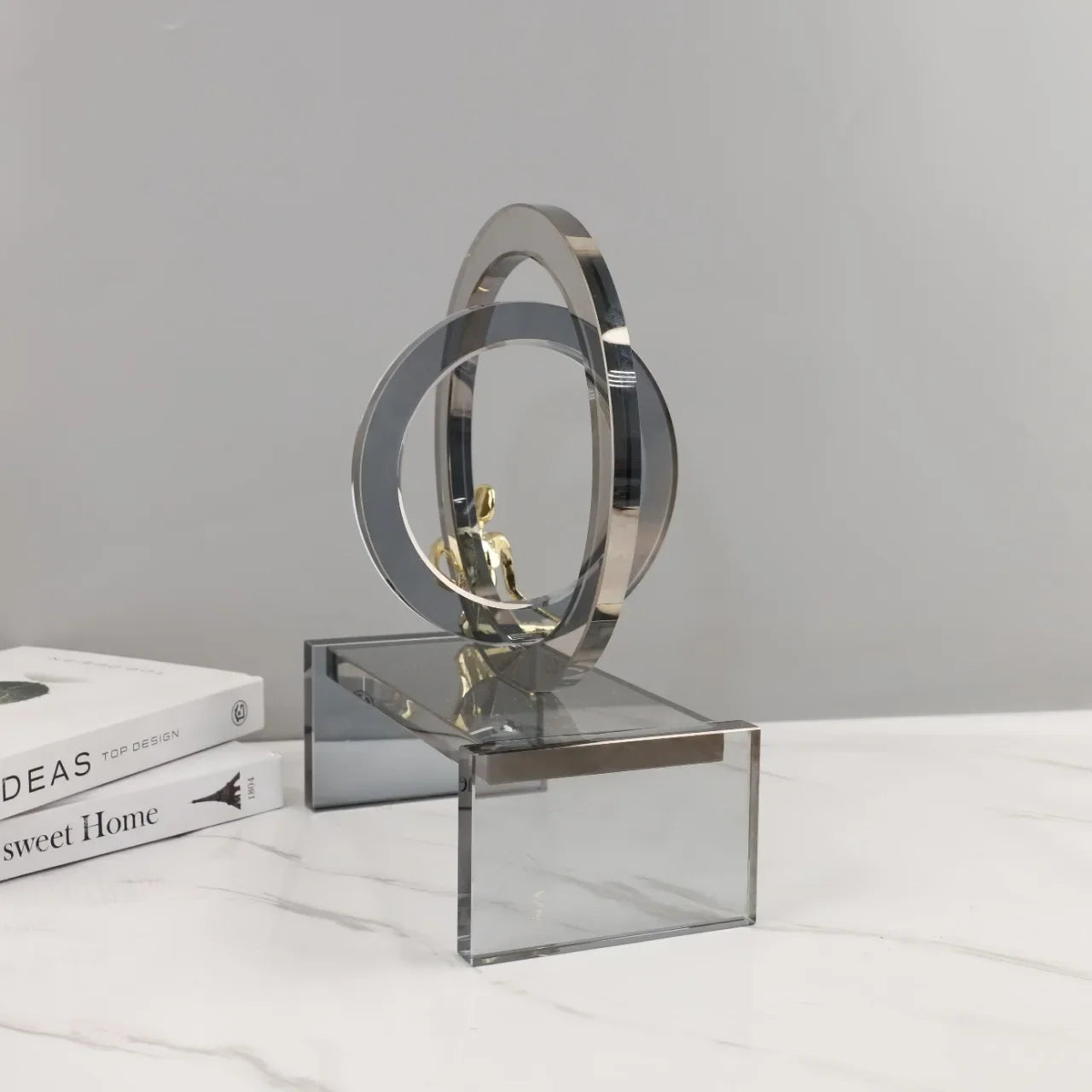 أضف لمسة من الرقي والجمال إلى منزلك مع تماثيل ديكوربيتس الزجاجية المزخرفة على شكل حلقات كريستال هندسية على شكل رجل ذهبي. ارتقِ بديكور منزلك بهذه القطع الرائعة التي ستبهر ضيوفك بالتأكيد وتثير نقاشاتهم.