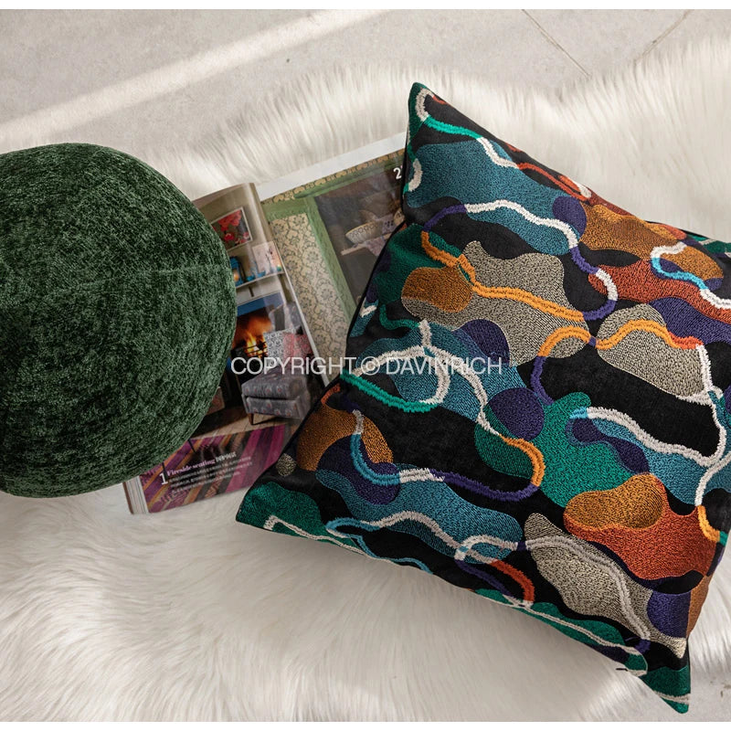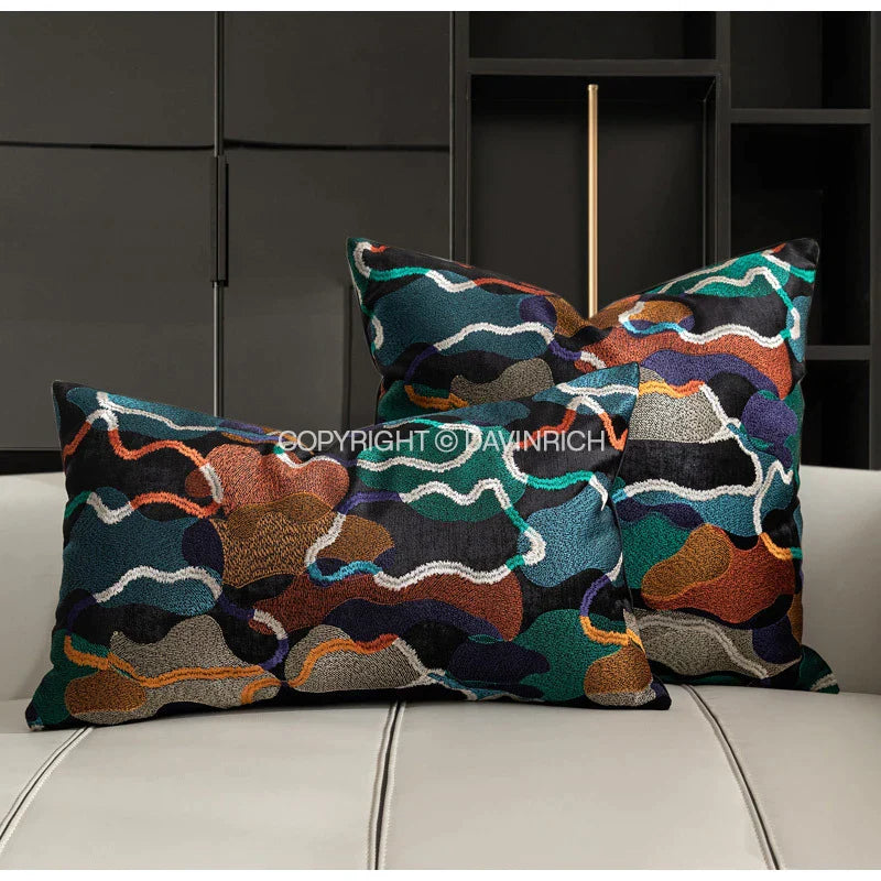 نقدم لكم أغطية وسائد ديكوربيتس المطرزة هندسيًا والمُجرّدة - الإضافة المثالية لديكور منزلك العصري. مصنوعة من مادة البوليستر 100%، هذه الأغطية مصممة لتضفي لمسةً أنيقةً على أي غرفة.