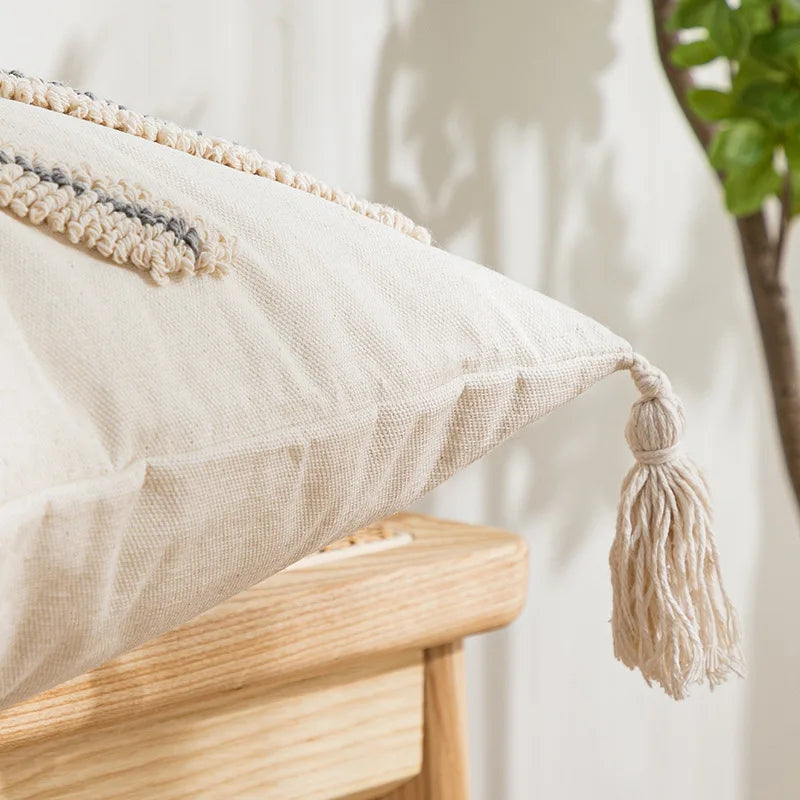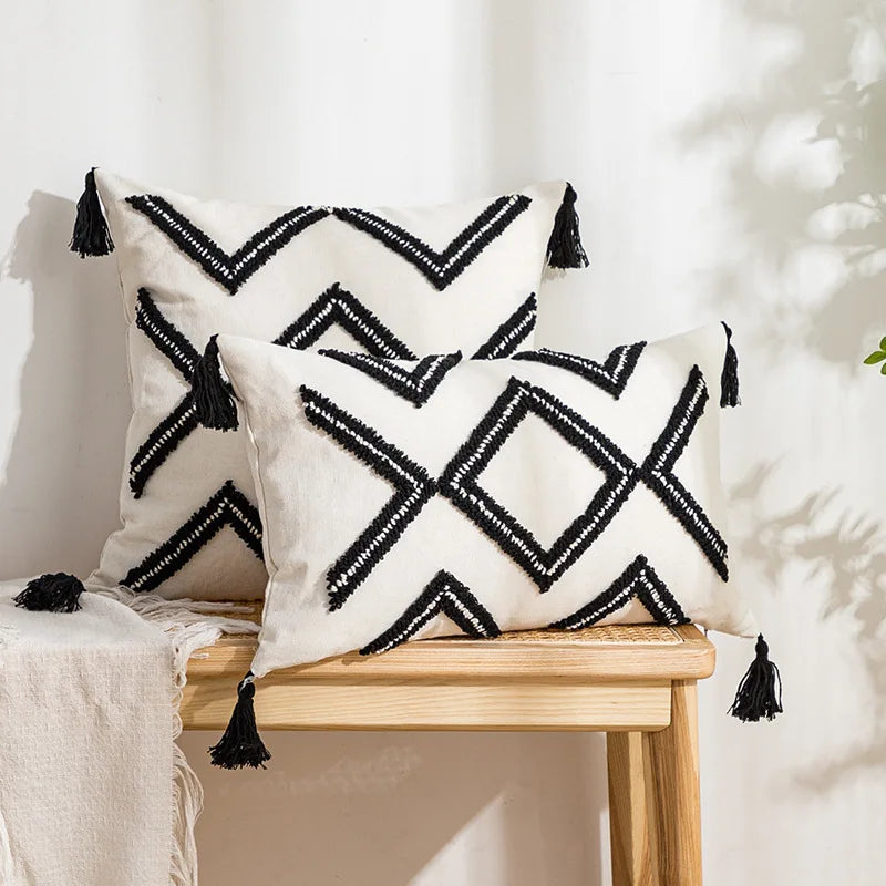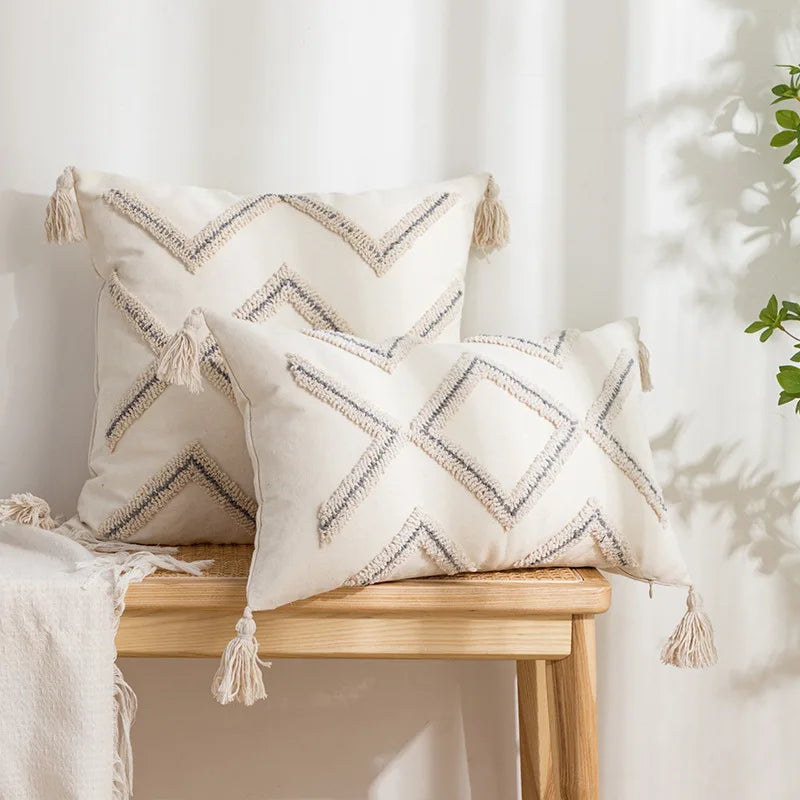 غطاء وسادة DecorBites™ مطرز هندسيًا بشراشيب - وسادة مبطنة بسيطة باللون الرمادي والأبيض