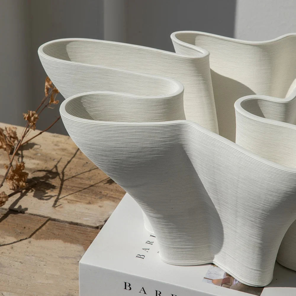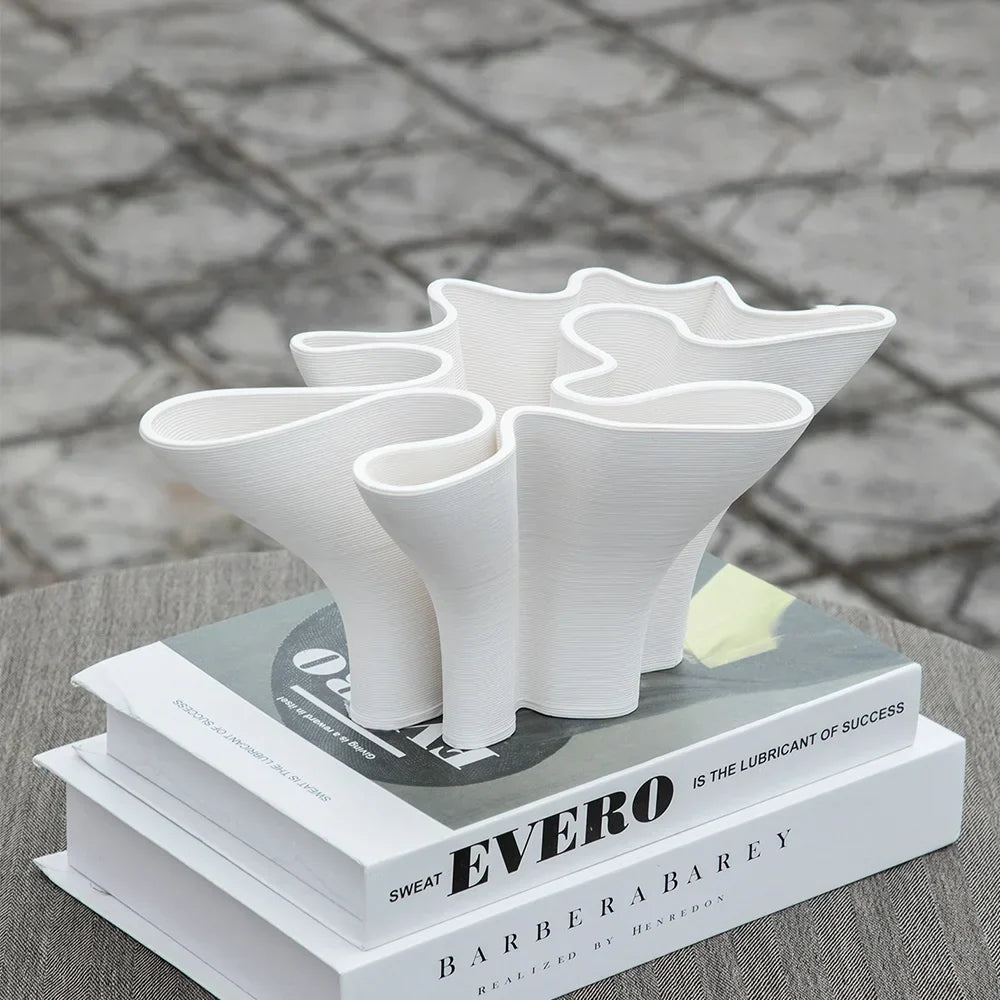 مزهرية خزفية هندسية قابلة للطي من DecorBites™: منحوتة يدوية تجريدية لتزيين المنزل