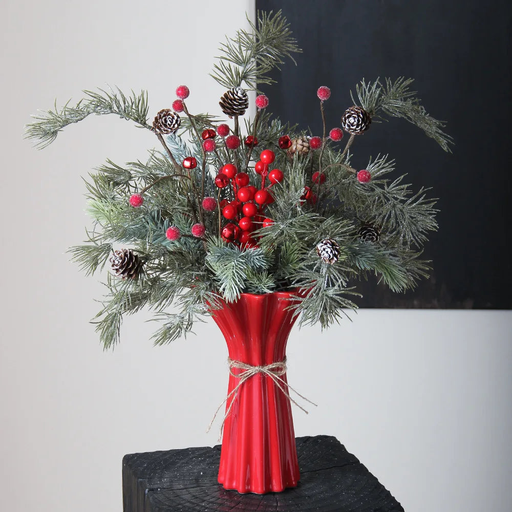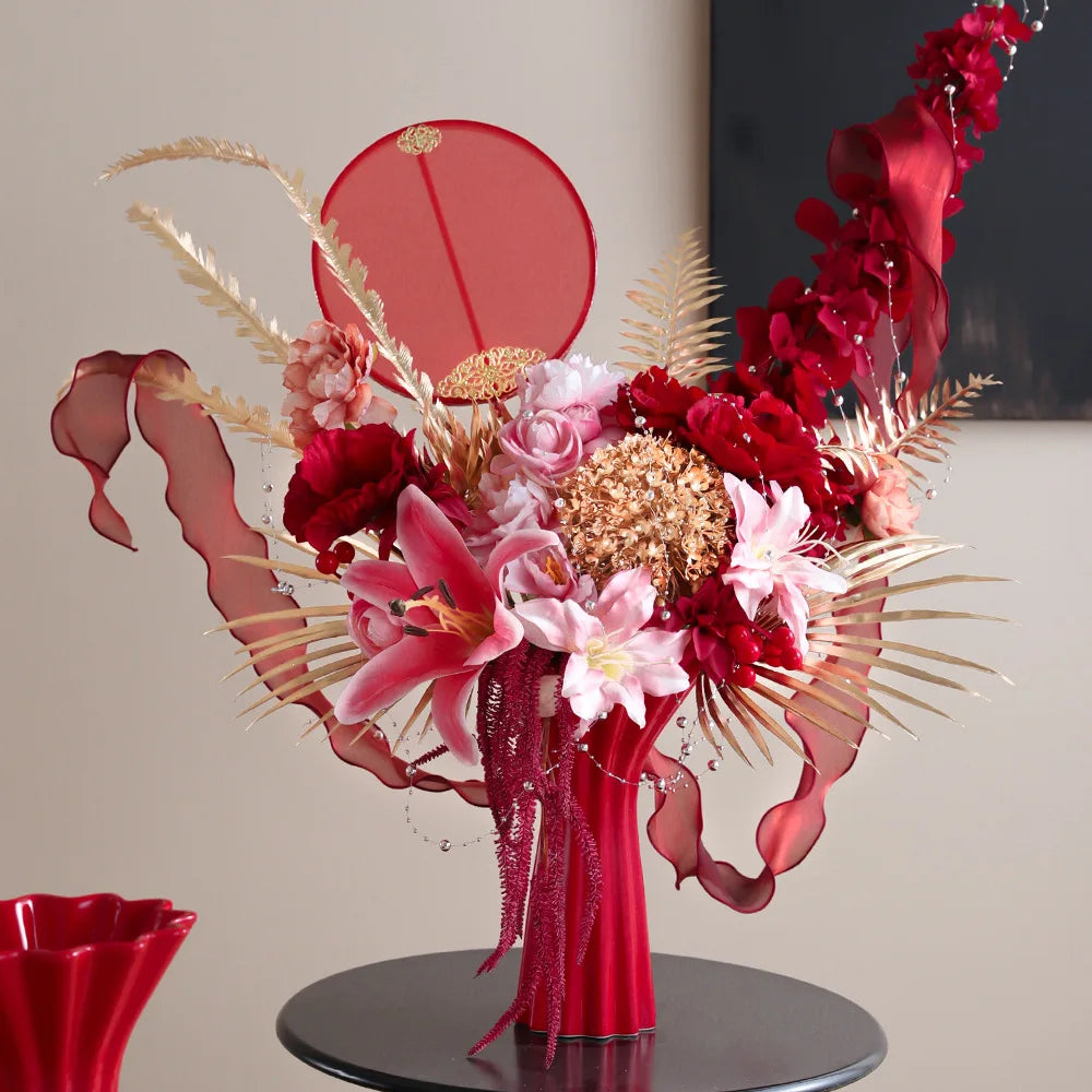 ديكوربايتس™ مزهرية خزفية بنمط هندسي مطوي، تنسيق زهور حمراء، ديكور منزلي في تيراريوم
