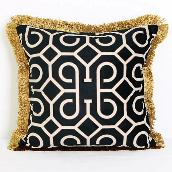غطاء وسادة قطني مُطرز بأهداب هندسية من DecorBites™، غطاء وسادة أريكة فاخر 30×50 سم