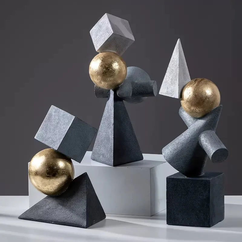 ديكور بايتس™ - منحوتات تجريدية هندسية على شكل كرة ذهبية، تماثيل مثلثة الشكل، لديكور المنزل