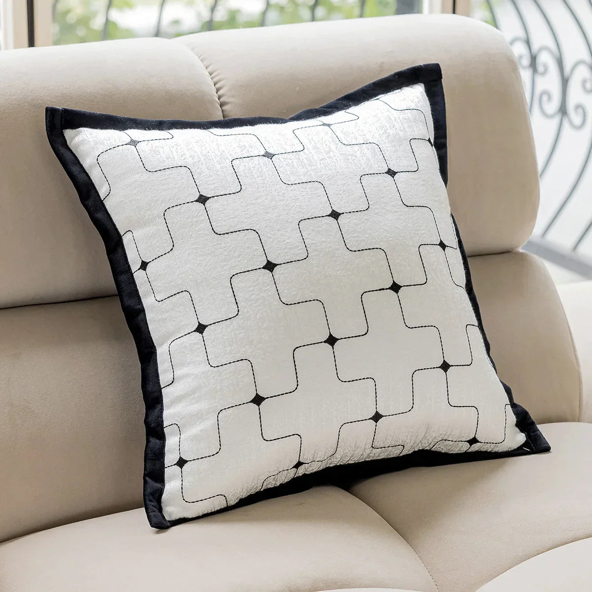 غطاء وسادة هندسي من ديكوربايتس™ بنقشة جاكار، مقاس 45*45، بتصميم عصري