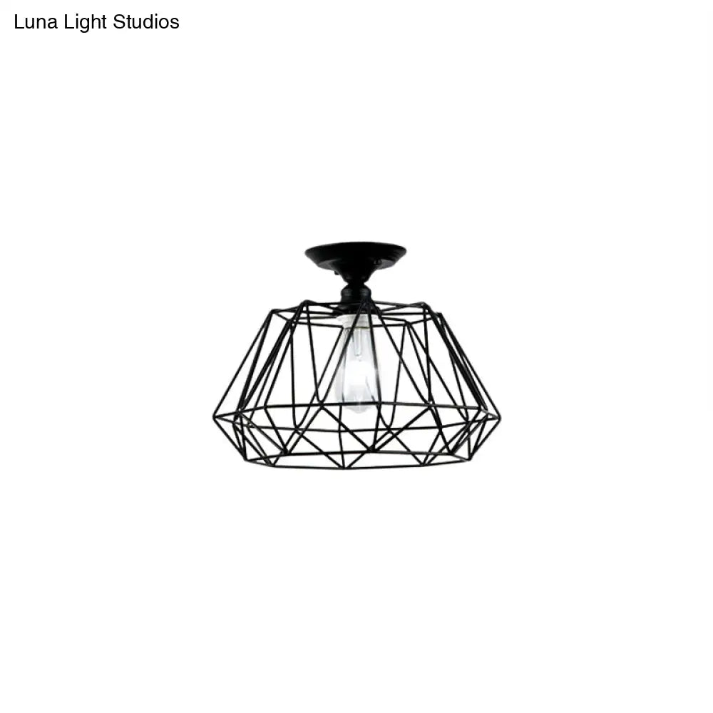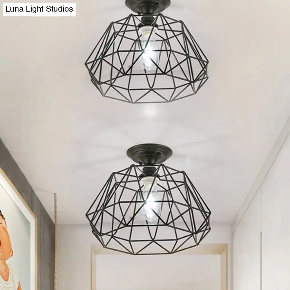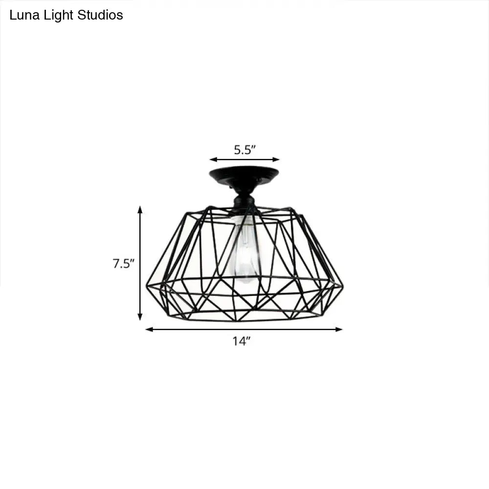 ديكوربايتس™ وحدة إضاءة معدنية صناعية هندسية شبه مستوية باللون الأسود مع قفص