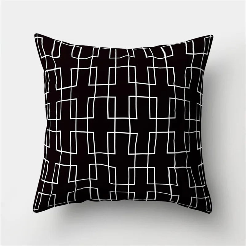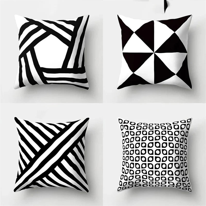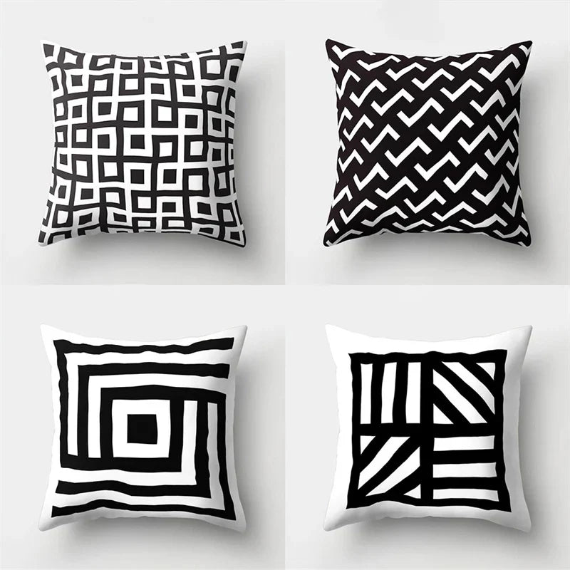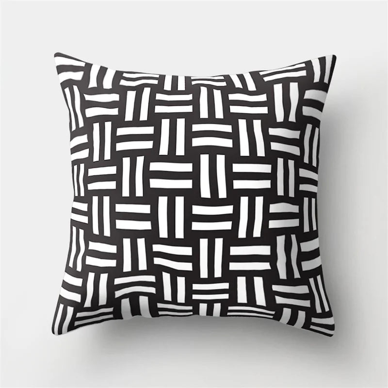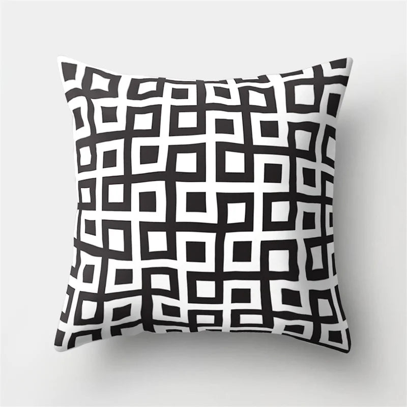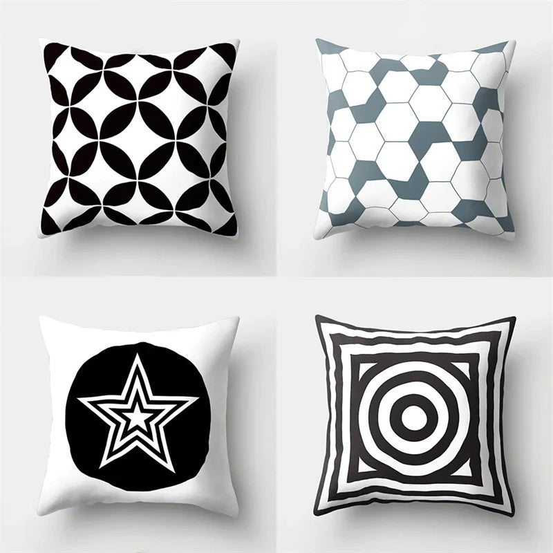 زيّن ديكور منزلك بغطاء وسادة ديكوربيتس بطبعة نجوم هندسية. مصنوع من مواد عالية الجودة، يتميز هذا الغطاء بتصميم مربع باللونين الأبيض والأسود، مما يضفي لمسة عصرية أنيقة على أي غرفة.