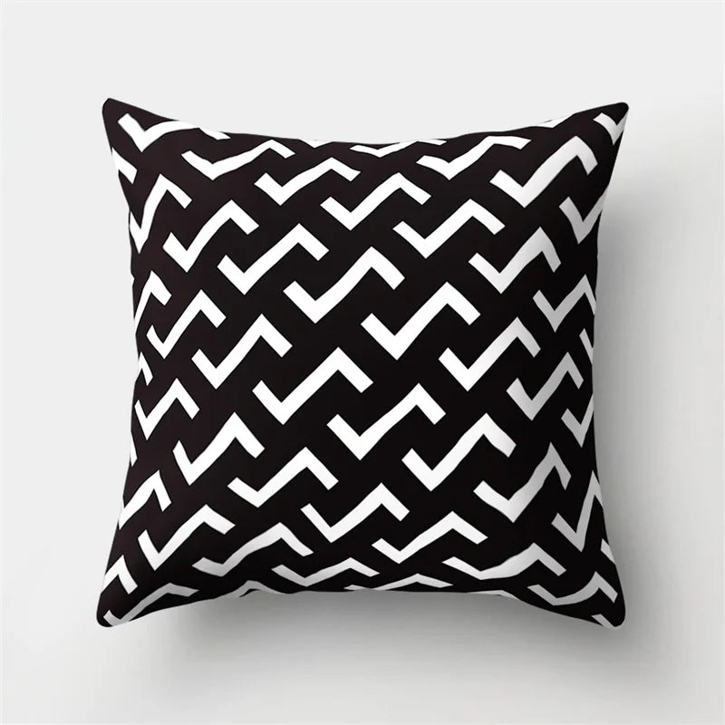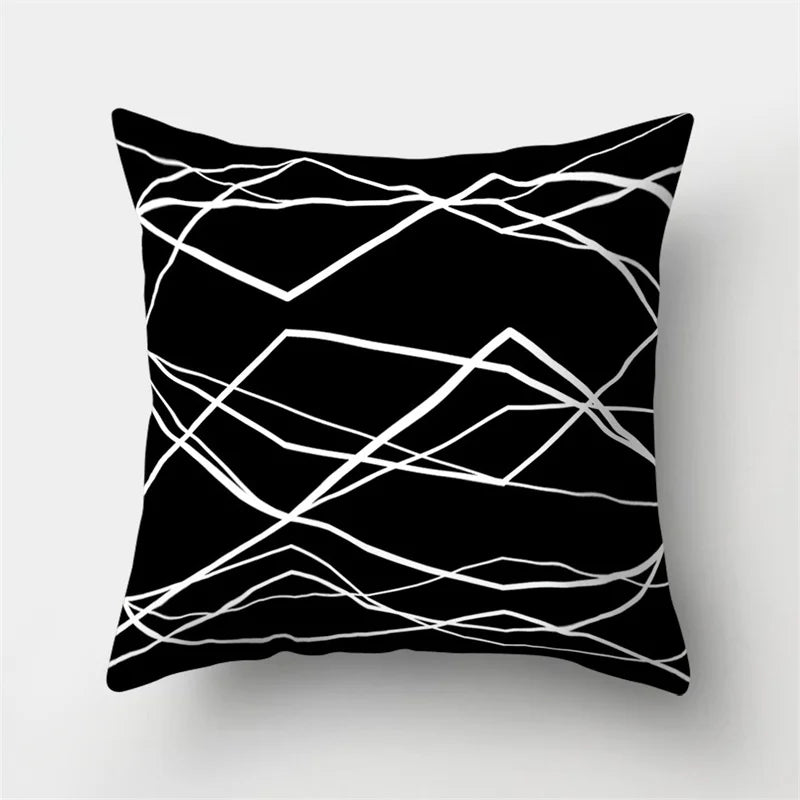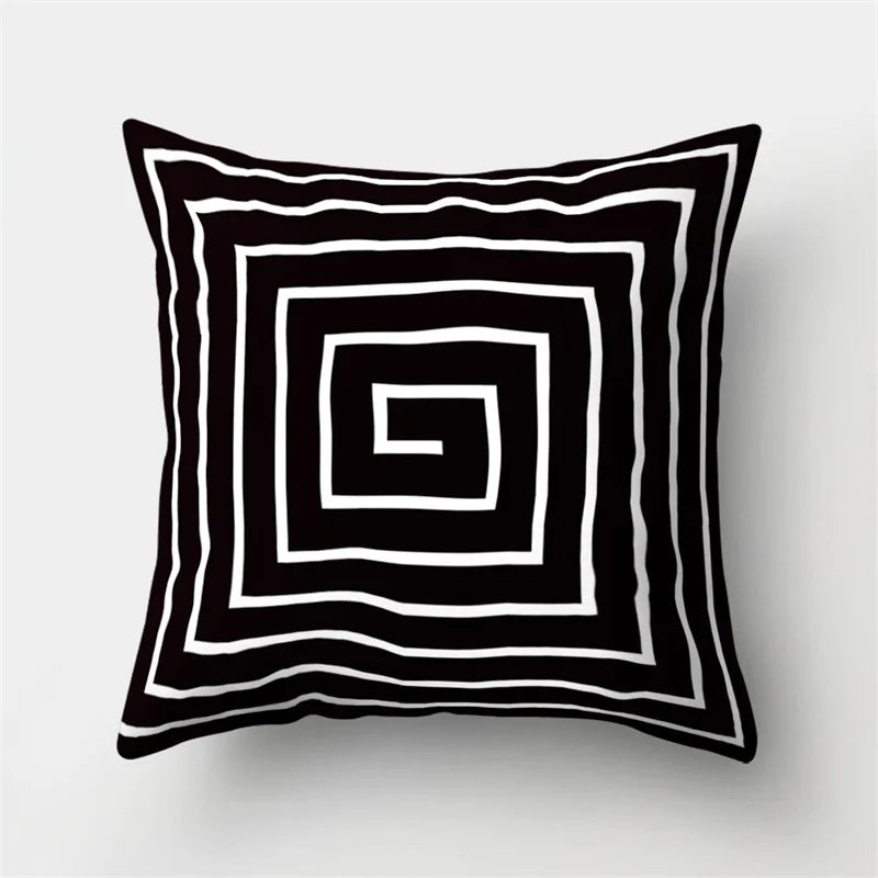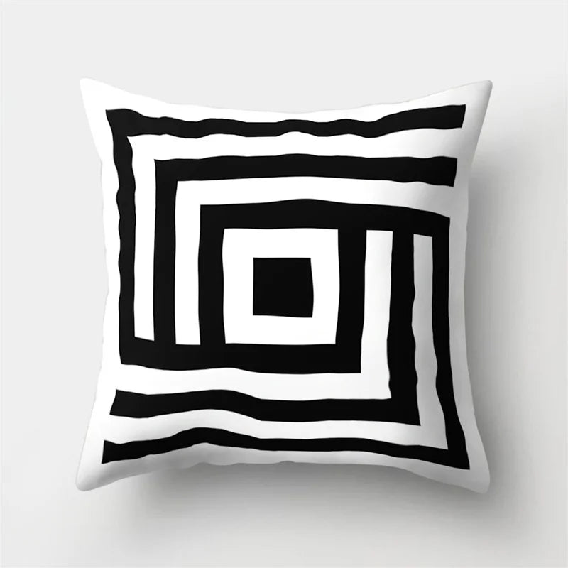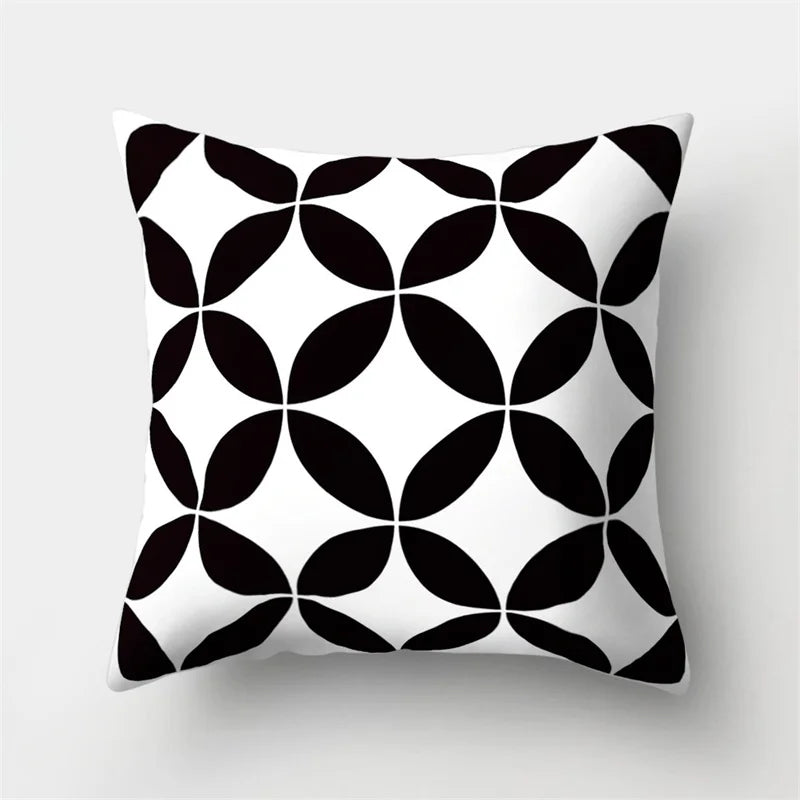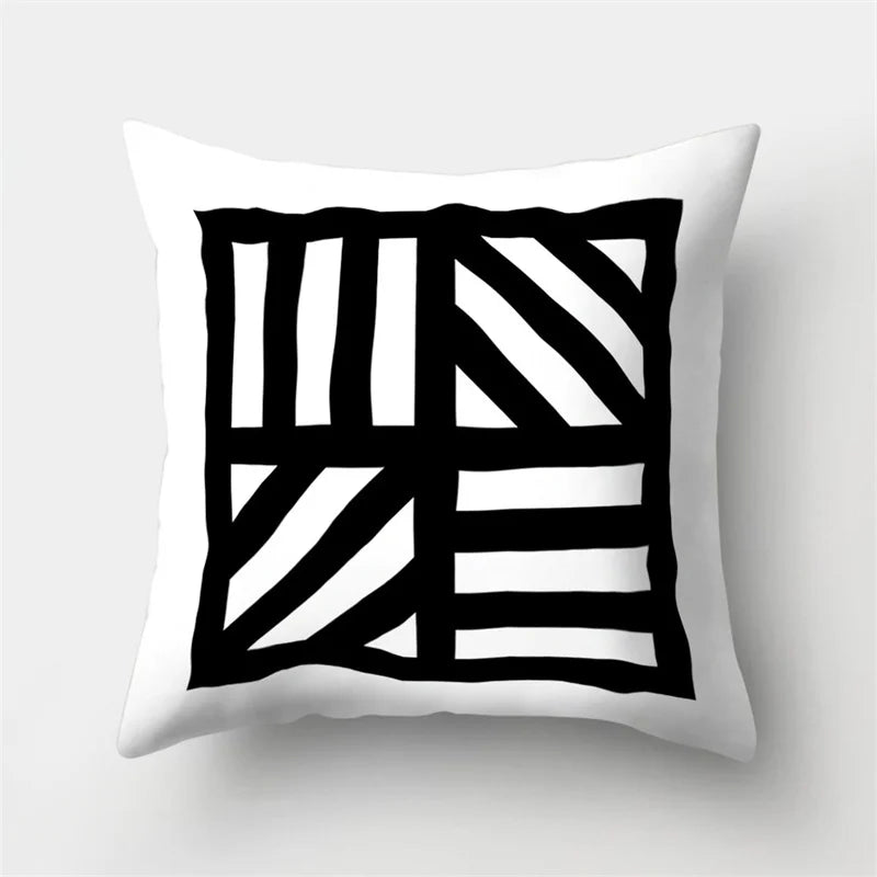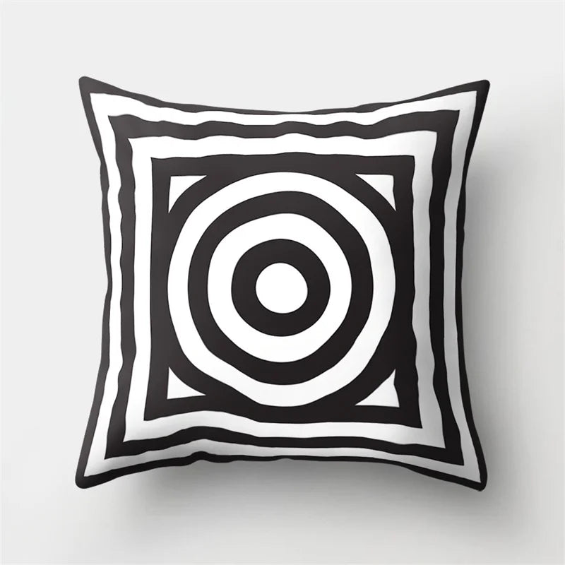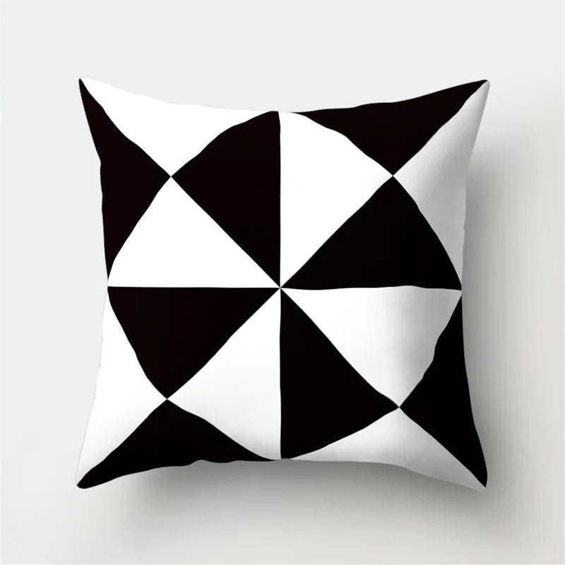 غطاء وسادة مطبوع عليه نجمة هندسية من DecorBites™ لديكور المنزل - نسيج مربع باللونين الأبيض والأسود