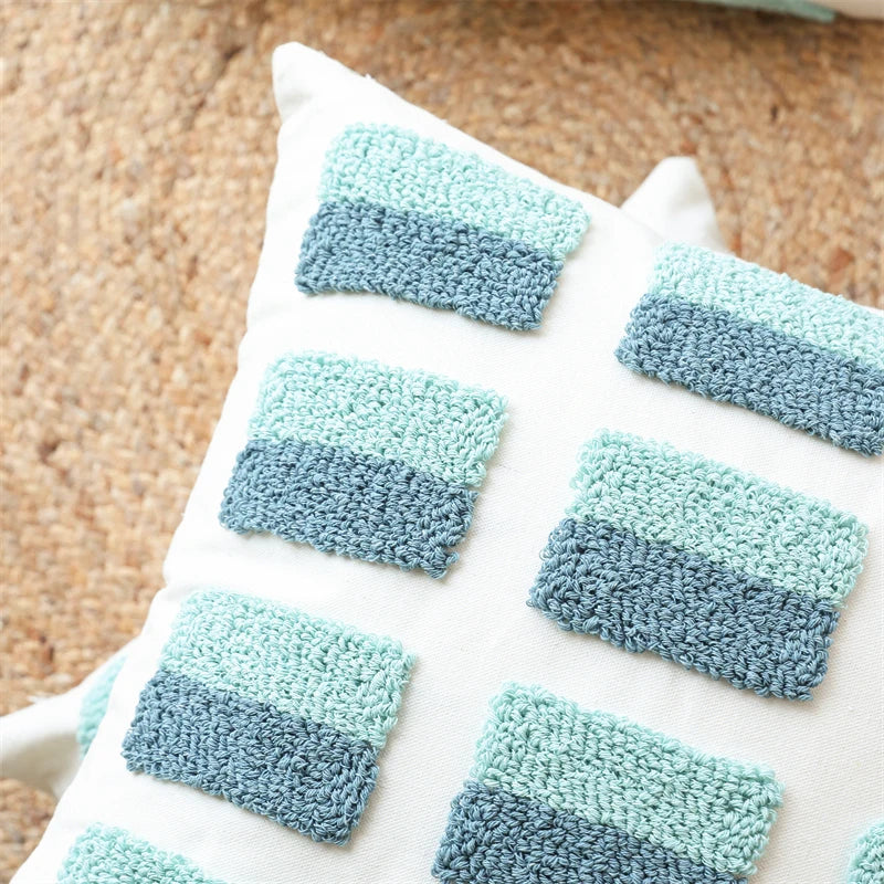 اللون الأزرق الغني لغطاء الوسادة سيضفي لمسةً من الألوان الزاهية على مساحتك، ويخلق جوًا نابضًا بالحياة وجذابًا. تصميم السحاب المفتوح يسمح بسهولة الإزالة والتنظيف، مما يضمن بقاء غطاء وسادتك منتعشًا وجميلًا لسنوات قادمة.