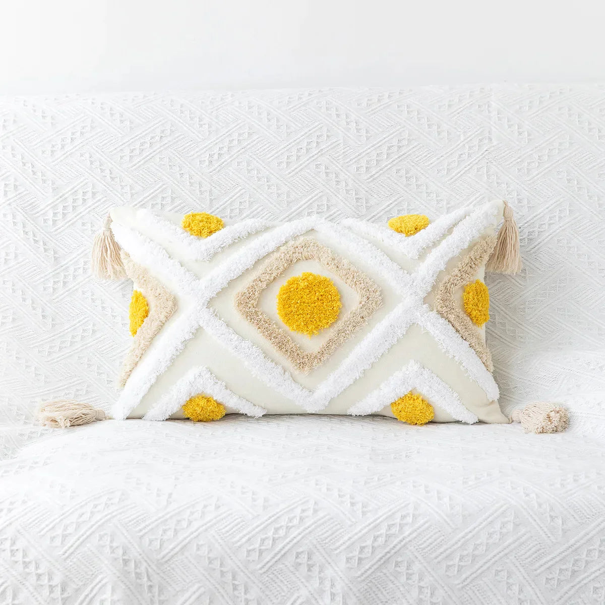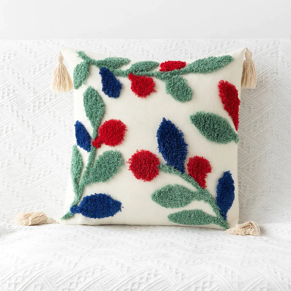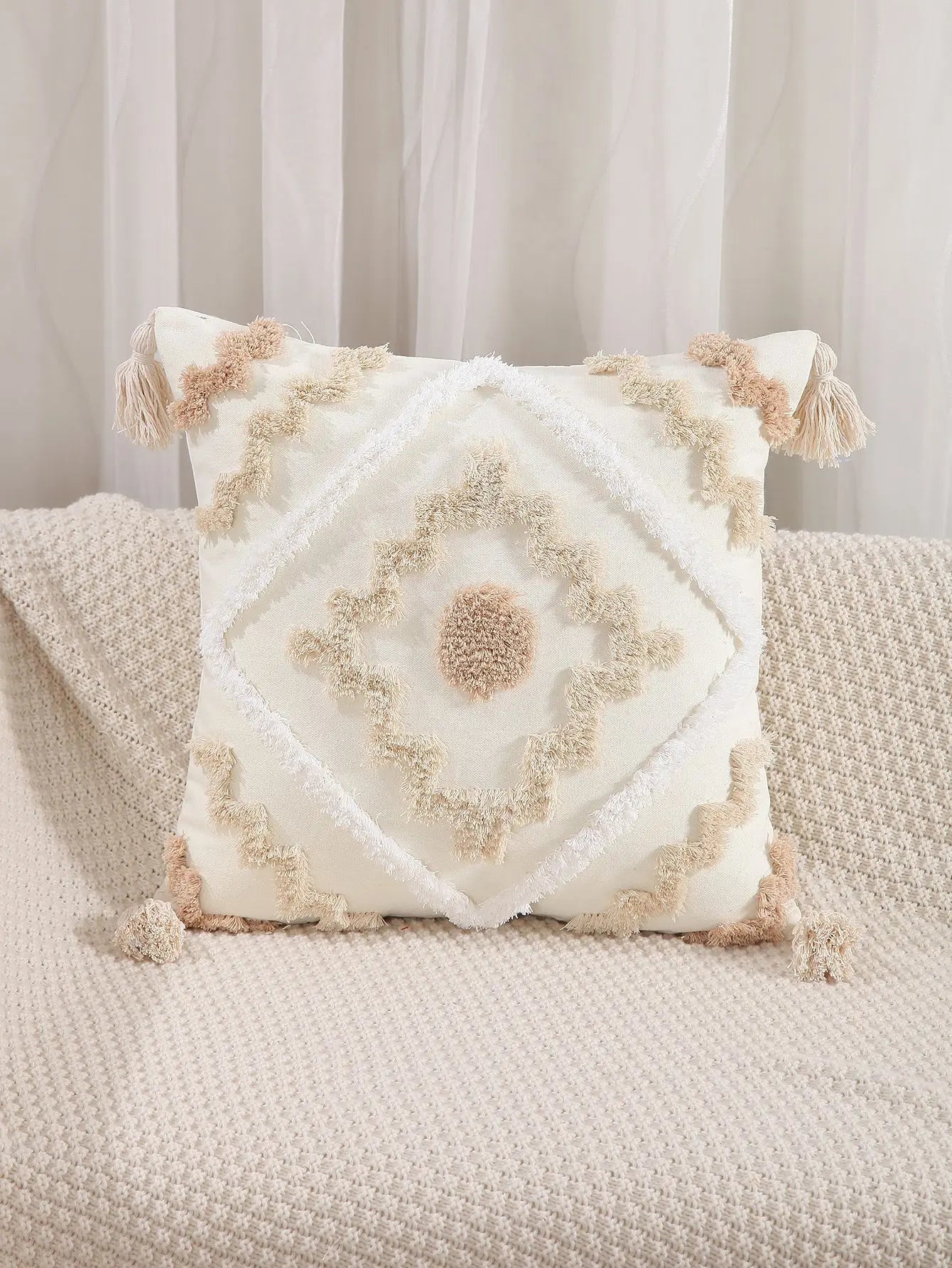 غطاء وسادة بوهو مطرز بنقشة زهور هندسية من DecorBites™ مع شرابة