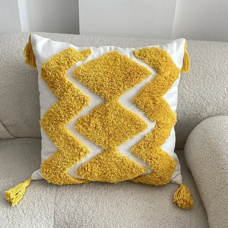 غطاء وسادة DecorBites™ بتصميم هندسي مزخرف بشراشيب 30×50 سم/45×45 سم