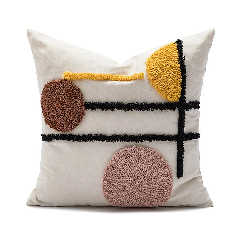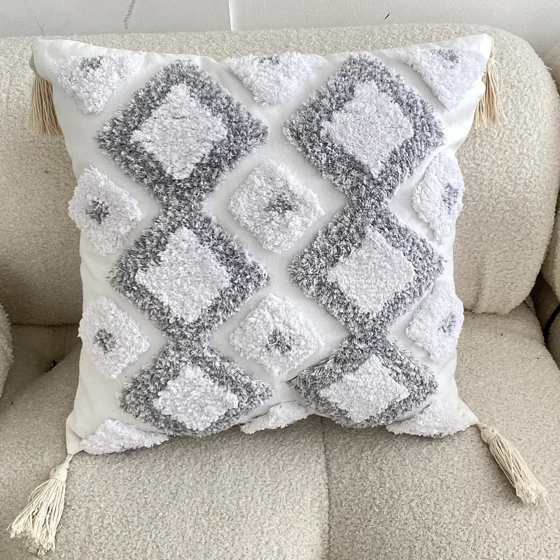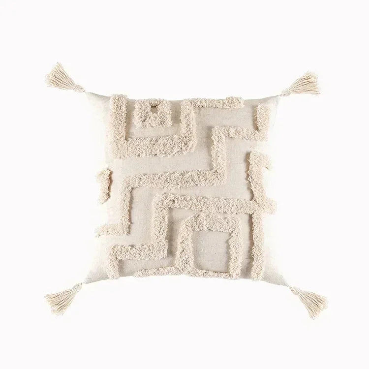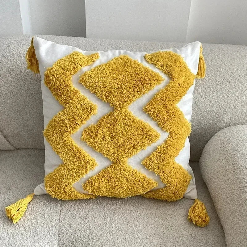 نقدم لكم أغطية وسائد ديكوربيتس المبطنة بأمواج هندسية مع شرابات مطرزة، وهي إضافة عصرية وأنيقة لديكور منزلك. صُنعت هذه الأغطية من مواد عالية الجودة لتُضفي لمسةً من الراحة والأناقة على مساحة معيشتك.