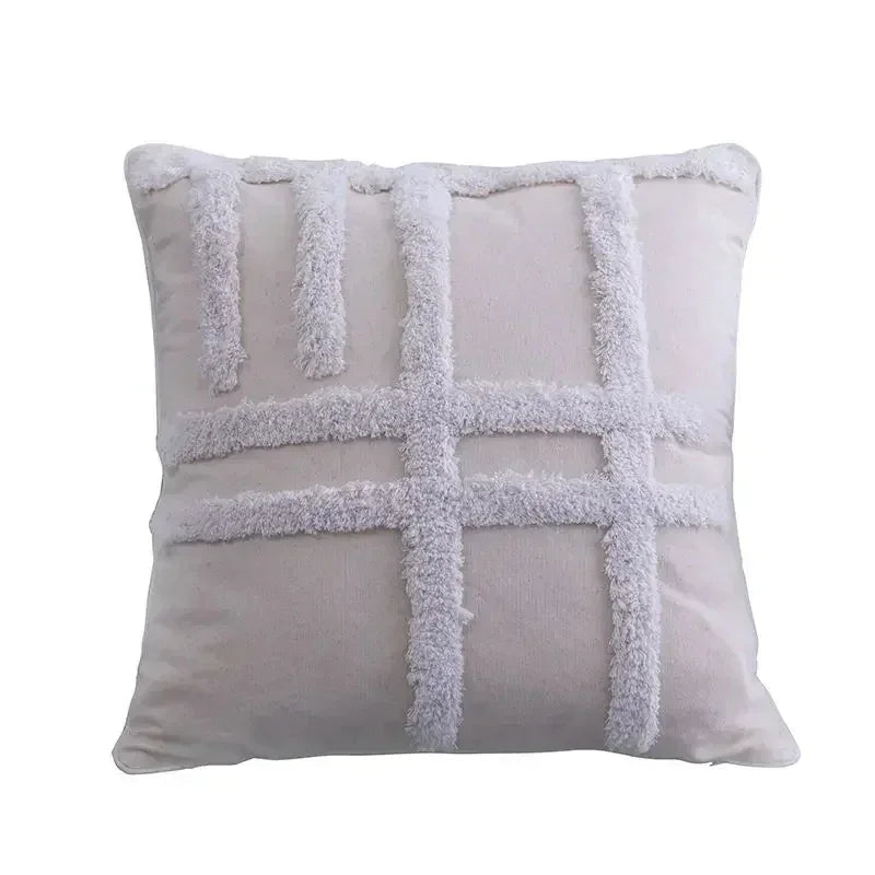 أغطية وسائد ديكوربيتس المبطنة بنقشة "الأمواج الهندسية" مصنوعة من مزيج من البوليستر والقطن، وتتميز بنقشة فريدة من نوعها مطرزة تُضفي لمسة من الأناقة على أي غرفة. يتناسب لونها العاجي وتصميمها الهندسي بسلاسة مع مجموعة واسعة من أنماط الديكور الداخلي، مما يجعلها خيارًا متعدد الاستخدامات للمساحات السكنية والتجارية على حد سواء.
