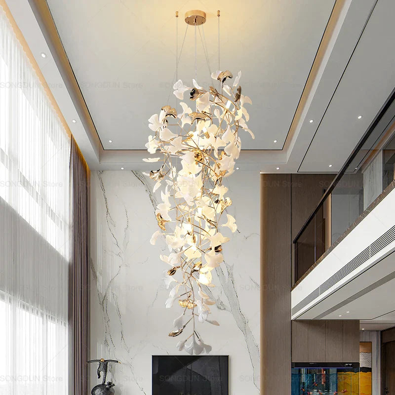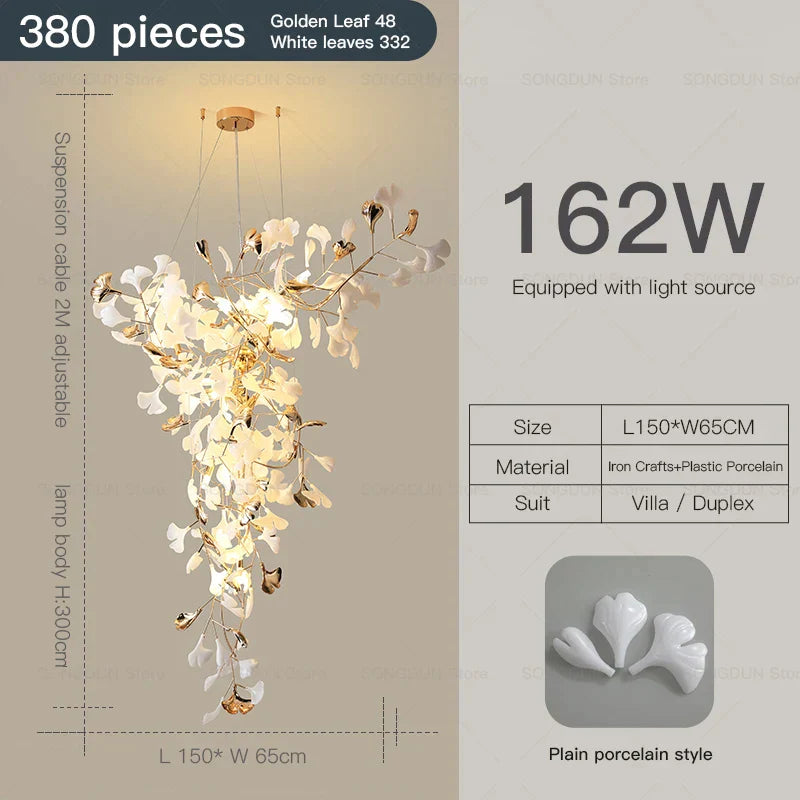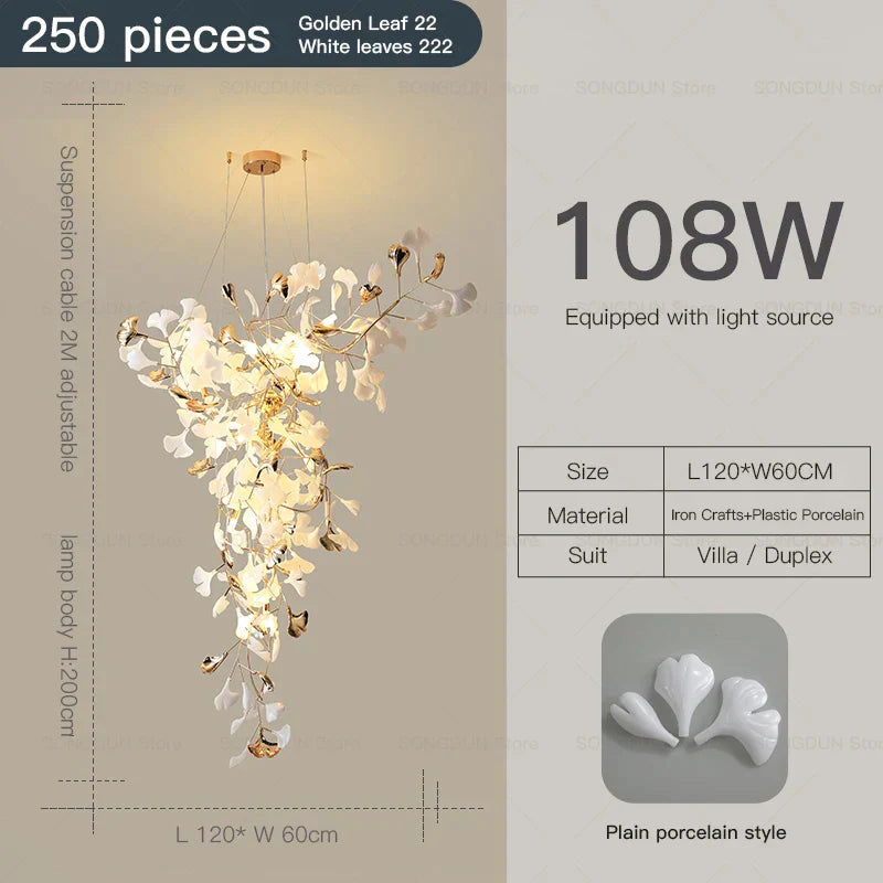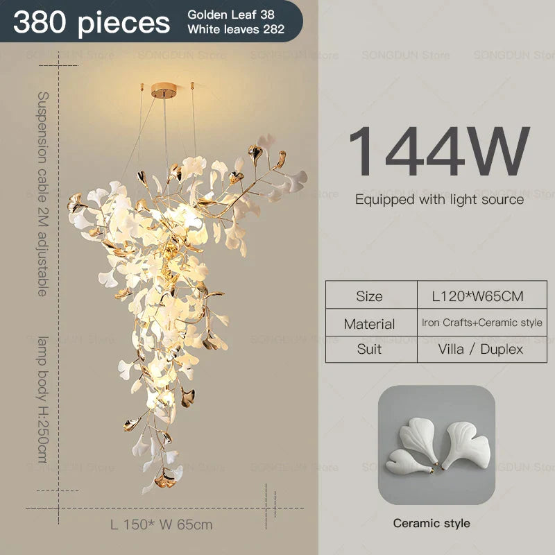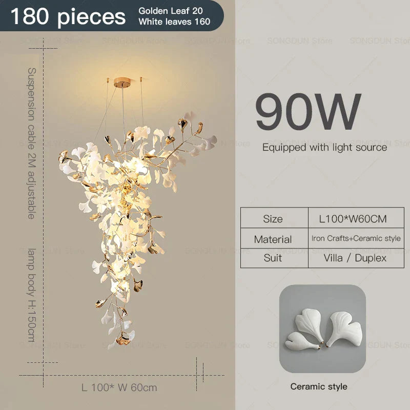 استمتع بجمال ورقي ثريا ديكوربيتس الخزفية بأوراق الجنكة، وحوّل مساحتك إلى ملاذ فاخر. ارتقِ بديكورك مع هذه التركيبة الرائعة للإضاءة، التي تجمع بين التصميم العصري والأناقة الخالدة.