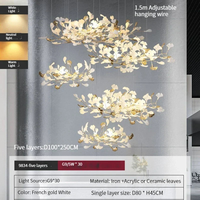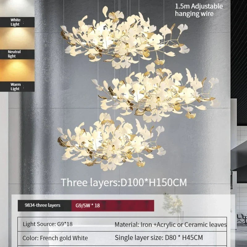 ثريا أوراق الجنكة من ديكوربايتس™: مصباح معلق فاخر على الطراز الاسكندنافي للفنادق والسلالم وغرف المعيشة