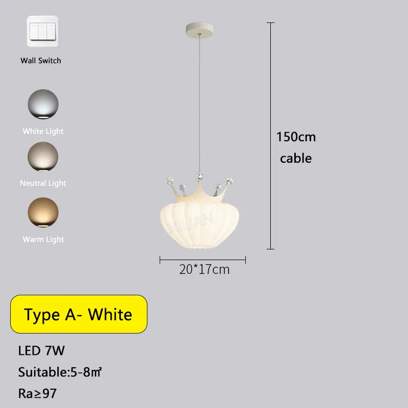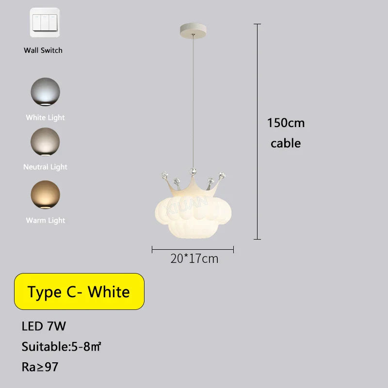 صُنع هذا المصباح المعلق من مواد عالية الجودة، ليدوم طويلًا ويضيف لمسةً من الفخامة إلى منزلك. تصميمه المستوحى من التاج سيترك انطباعًا مميزًا، مما يجعله خيارًا مثاليًا لغرف نوم الأطفال، وغرف المعيشة، أو أي مساحة أخرى تحتاج إلى لمسة أنيقة.