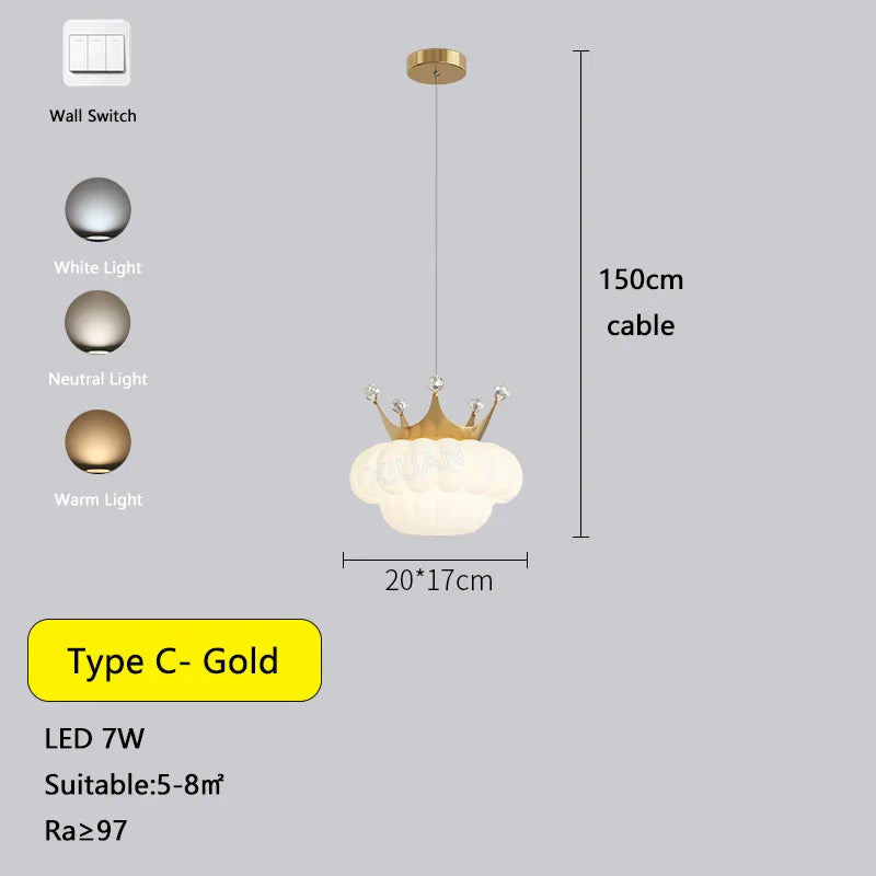 مصباح معلق على شكل تاج ذهبي من DecorBites™: مصباح معلق فاخر على شكل سحابة لغرفة نوم الأطفال وغرفة المعيشة