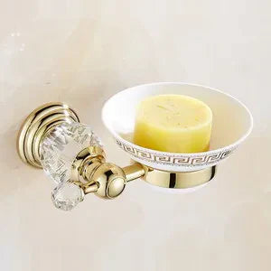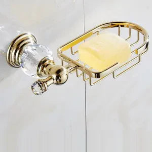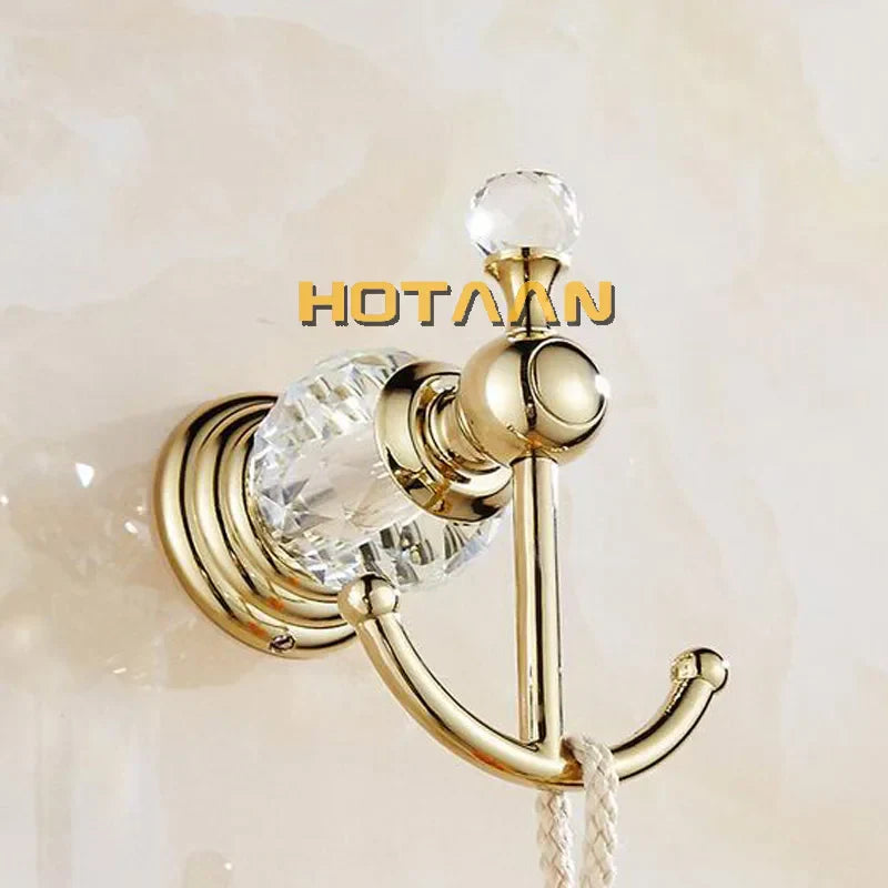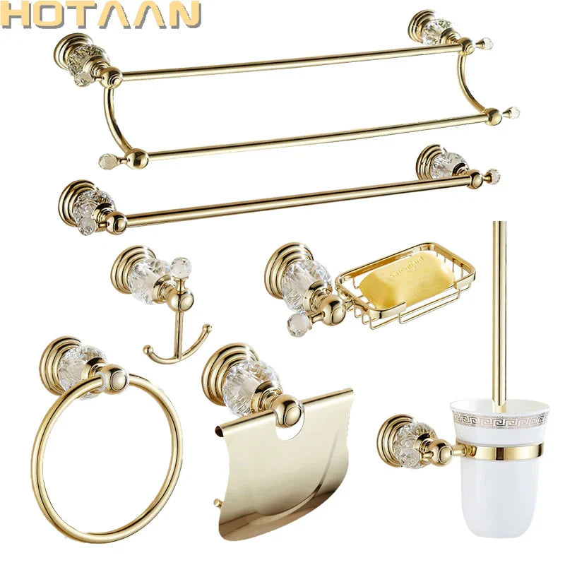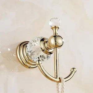 نقدم لكم مجموعة إكسسوارات الحمام الكريستالية الذهبية، إضافة فاخرة لحمامكم. مصنوعة من الفولاذ المقاوم للصدأ عالي الجودة بلمسة نهائية ذهبية خلابة، هذه المجموعة الجدارية من أدوات الحمام مصممة لترتقي بديكور حمامكم إلى آفاق جديدة من الرقي.