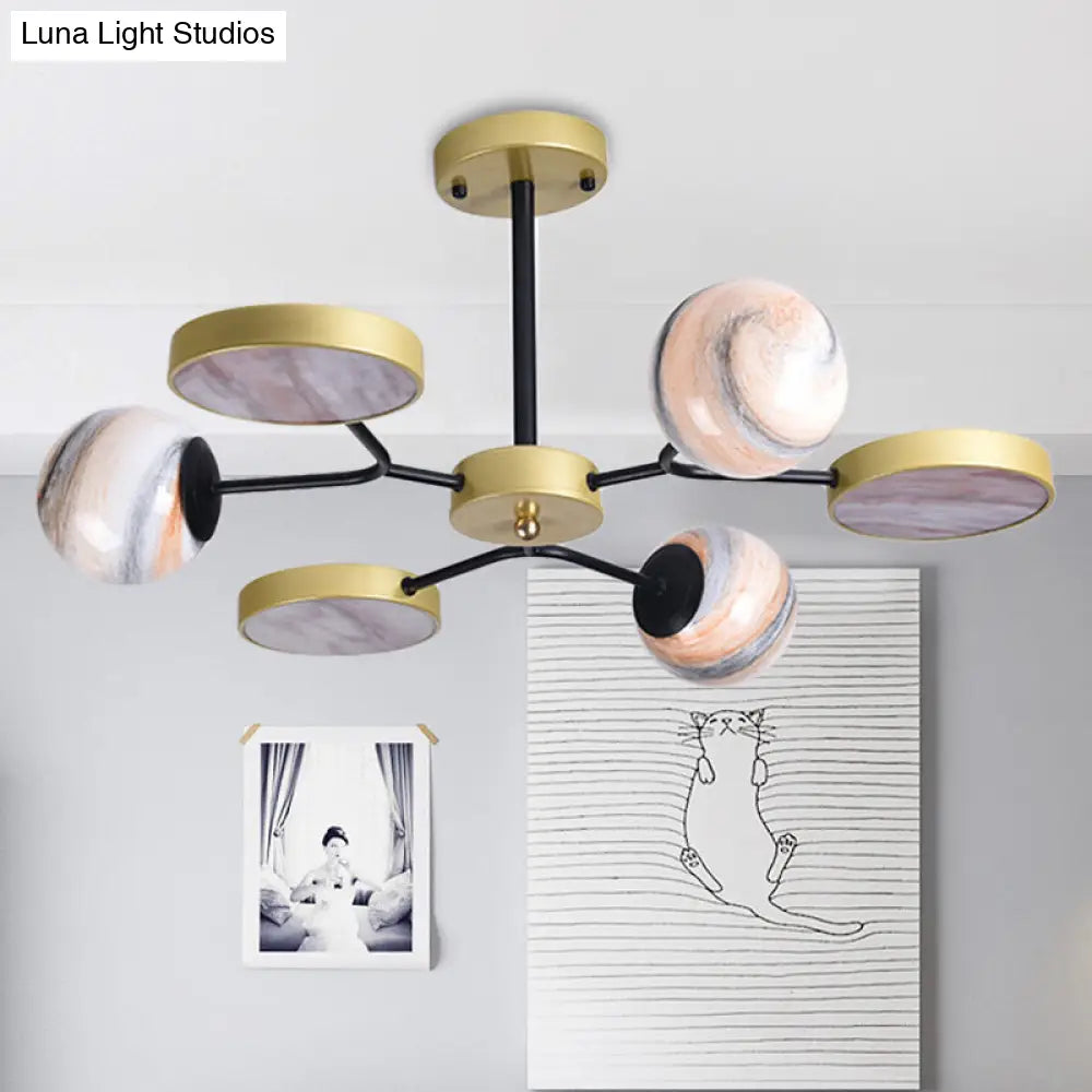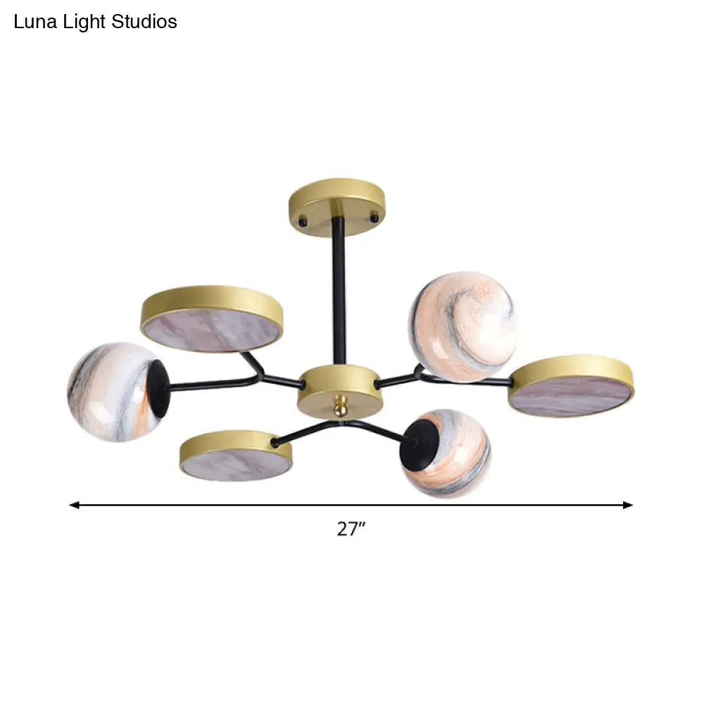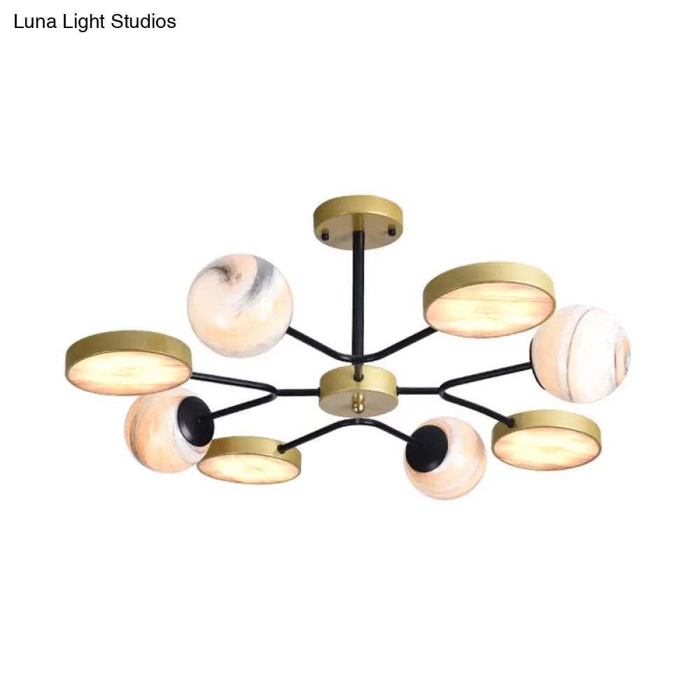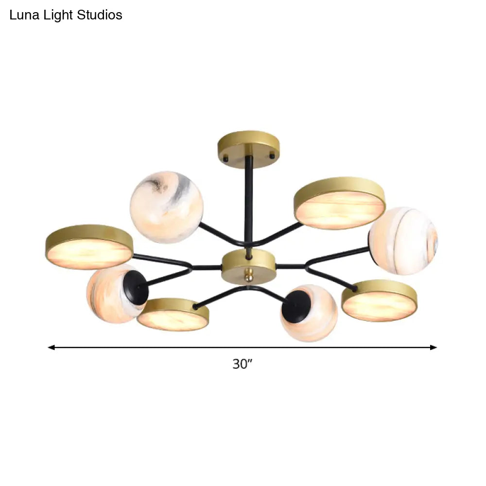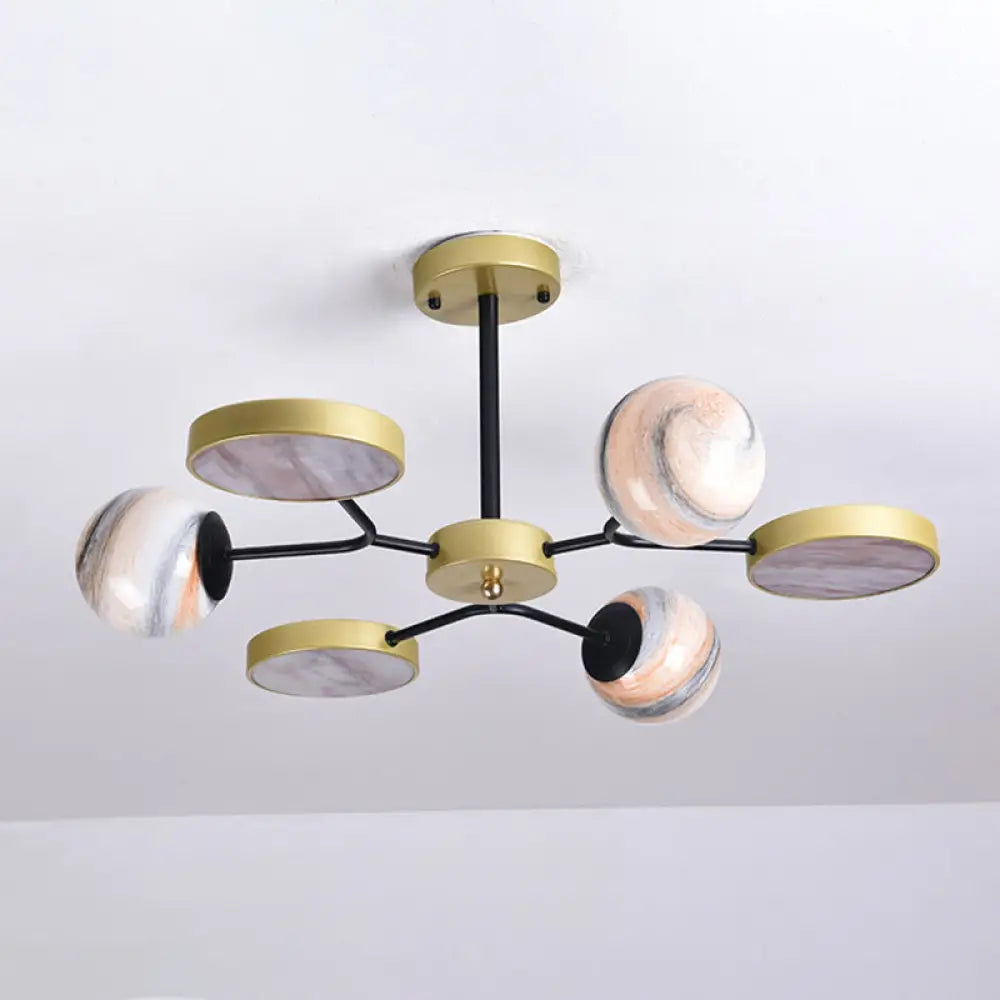 ثريا دائرية من الزجاج المنفوخ يدويًا من DecorBites™ - وحدة إضاءة معلقة معاصرة باللون الذهبي (6/8 مصابيح)