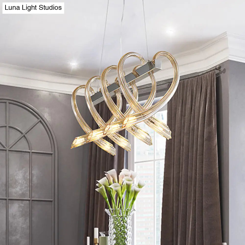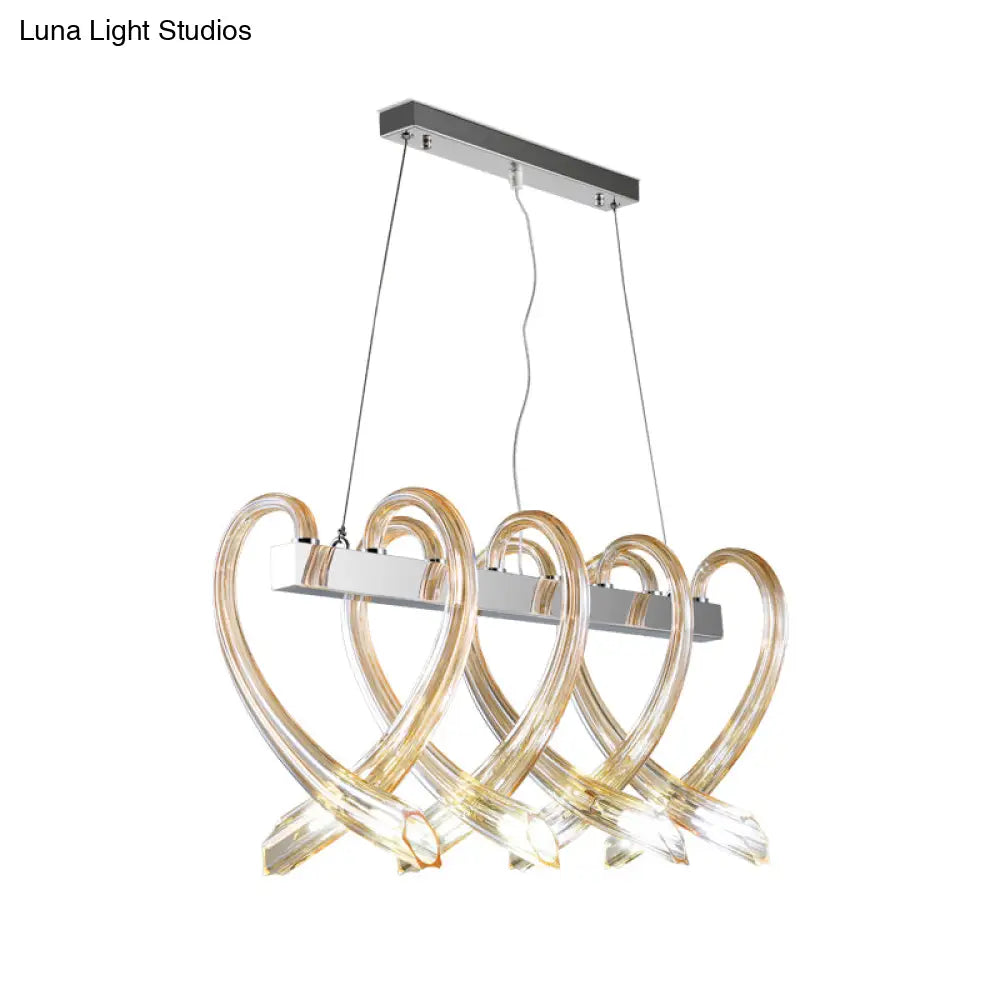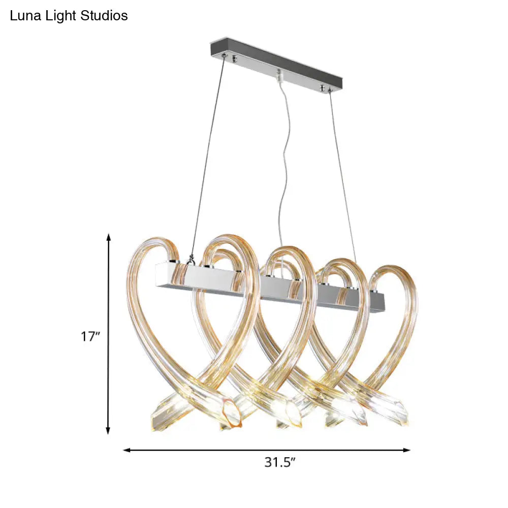 ديكوربايتس™ - مصباح جزيرة كروم على شكل قلب: مصباح معلق بسيط من الزجاج الكهرماني بثمانية رؤوس للمطاعم