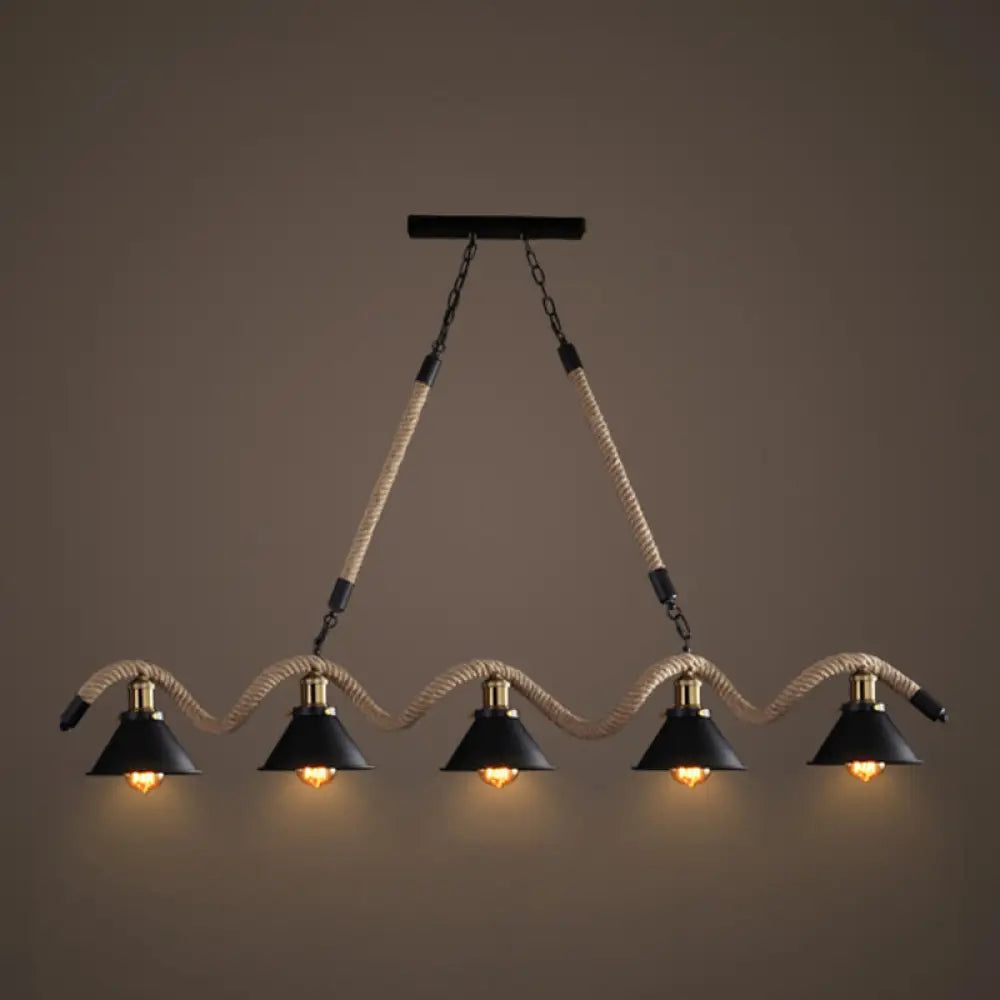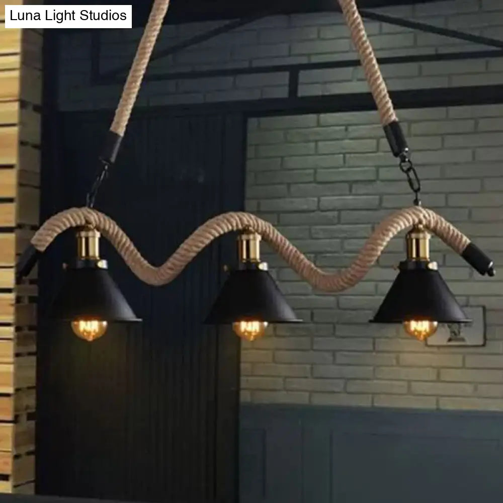 ثريا ديكوربايتس™ العتيقة المعلقة من حبل القنب باللون الأسود - مثالية للمطاعم والجزر