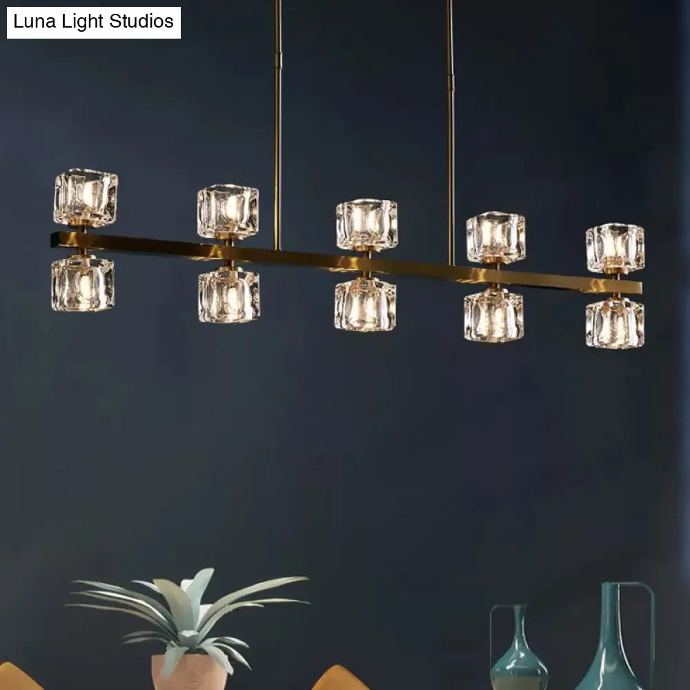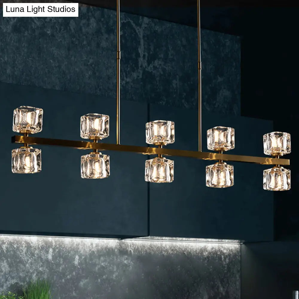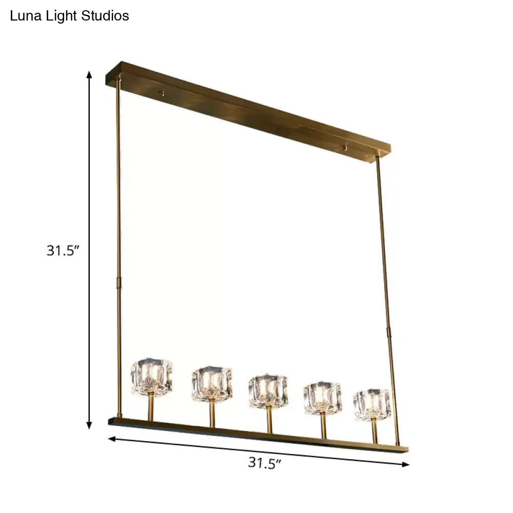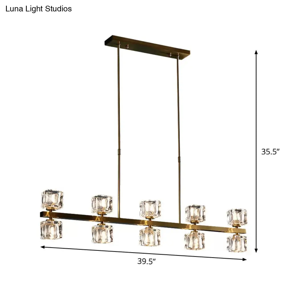 ديكوربايتس™ مصباح معلق كريستالي على شكل مكعب ثلج - مصباح جزيرة ذهبي بسيط لغرفة الطعام (5/10 رؤوس)