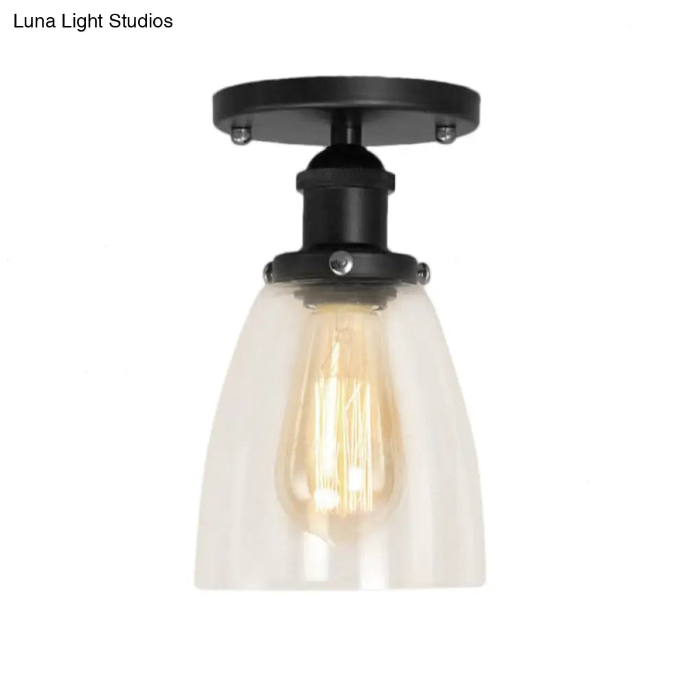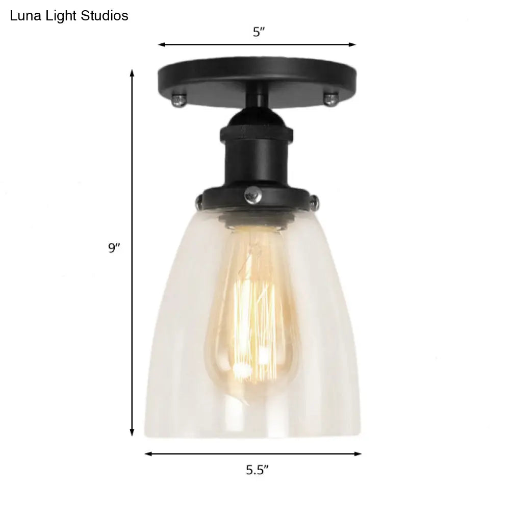 مصباح سقف صناعي مخروطي الشكل، زجاجي شفاف، شبه مسطح، بمصباح واحد، لغرفة المعيشة، باللون الأسود، مثالي لإضفاء لمسة من الطابع الصناعي على أي غرفة معيشة. المصباح مصنوع من الزجاج، ويأتي بلمسة نهائية شفافة. يحتوي على مصباح واحد يعمل بنوع LED، أو مصباح متوهج، أو مصباح فلورسنت. الجهد الكهربي هو 220-240 فولت أو 110-120 فولت. قاعدة المصباح E26/E27.