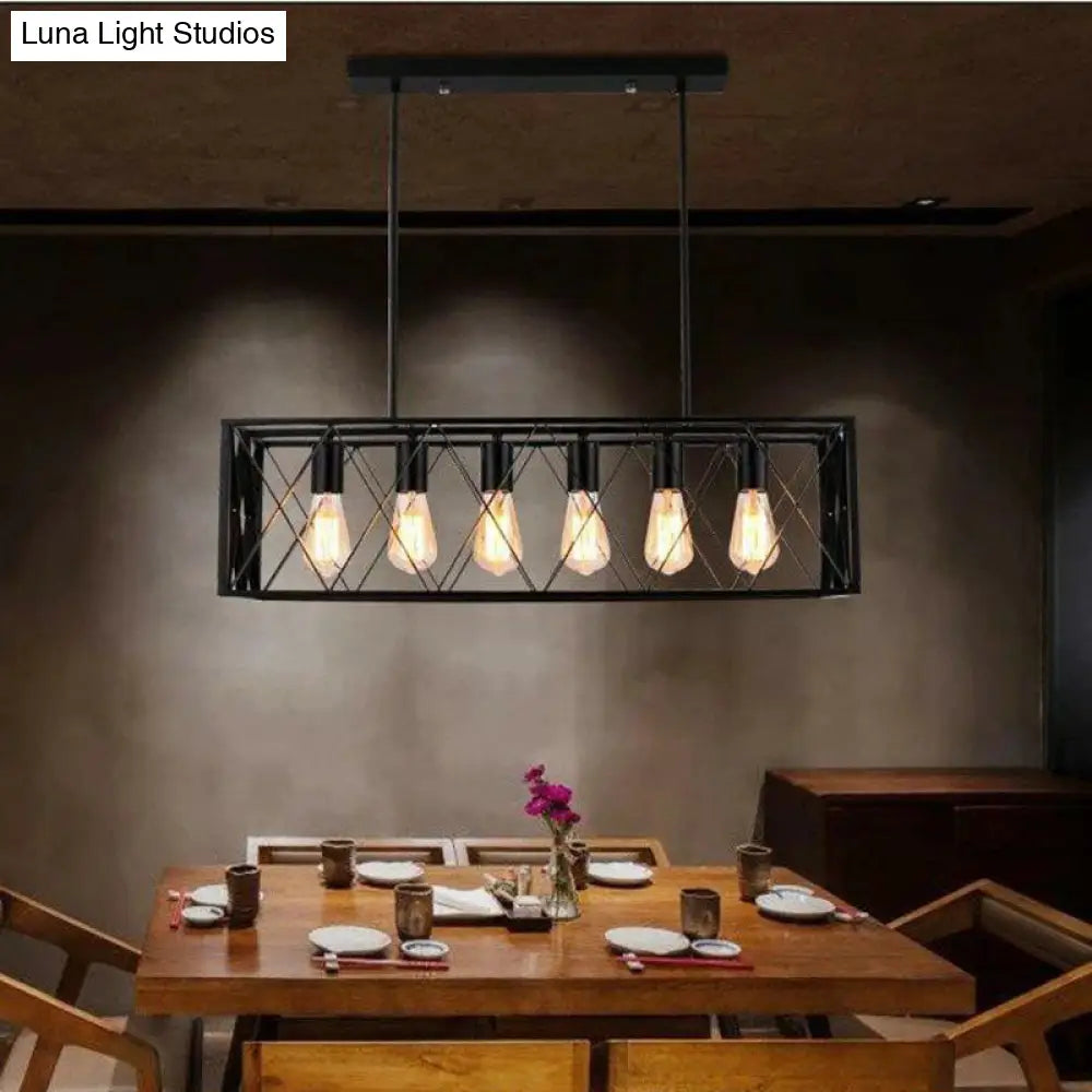 مصباح معلق صناعي بإطار متقاطع من DecorBites™ باللون الأسود لغرفة الطعام - مصباح معلق من الحديد على الجزيرة