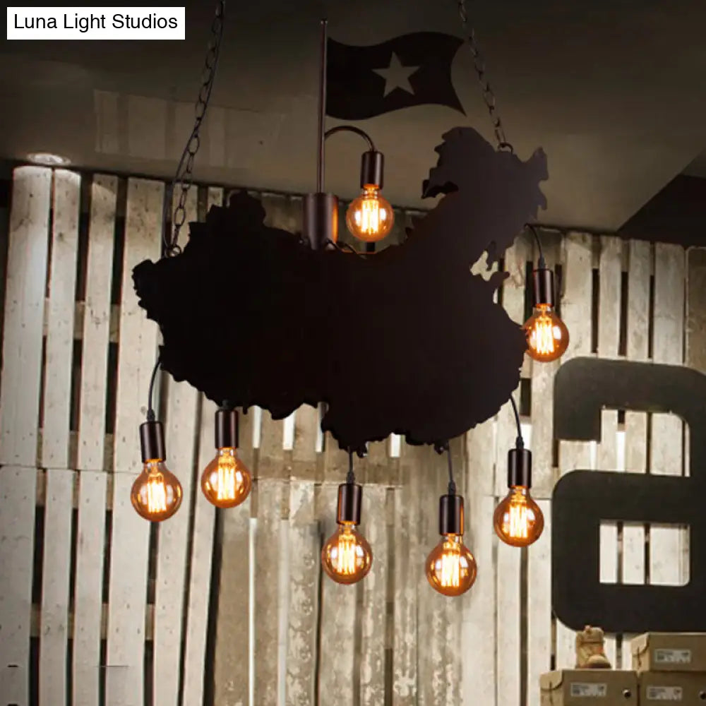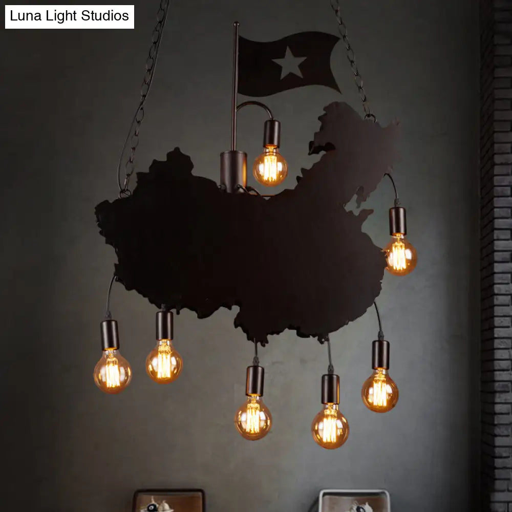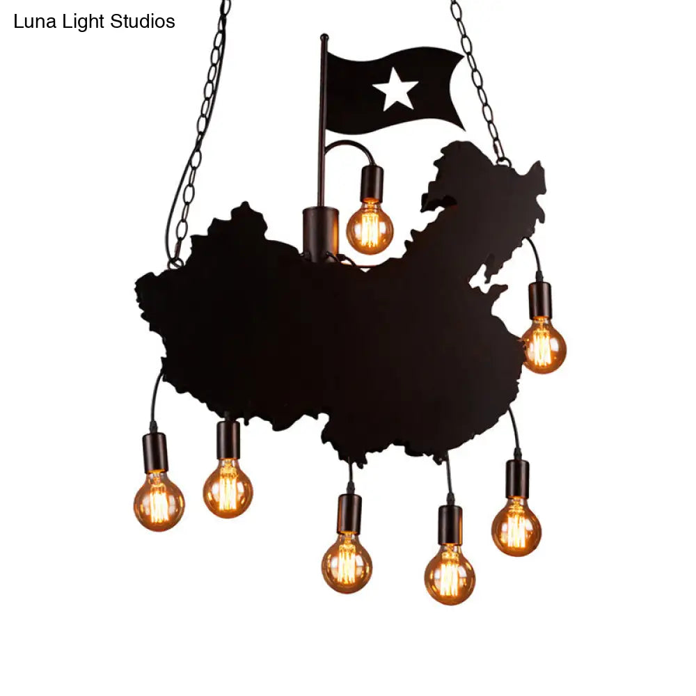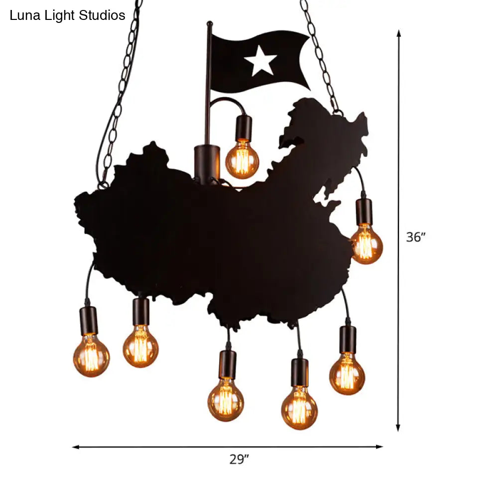 ديكوربايتس™ مصباح معلق صناعي على شكل جزيرة - طقم إضاءة معلقة باللون الأسود بلوحة حديدية - 7 لمبات - على شكل خريطة وعلم