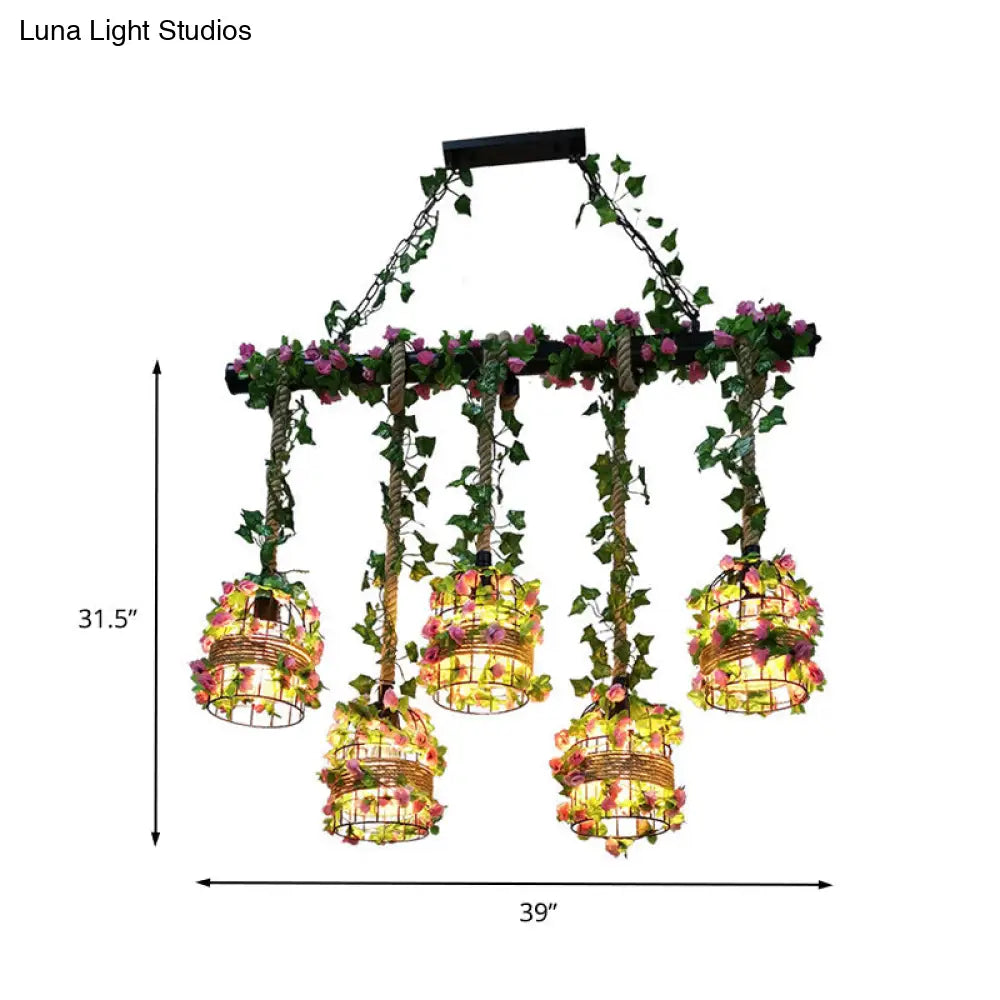 وحدة إضاءة جزيرة قفصية سوداء معدنية صناعية من DecorBites™ مزودة بخمسة رؤوس للمطاعم والنباتات