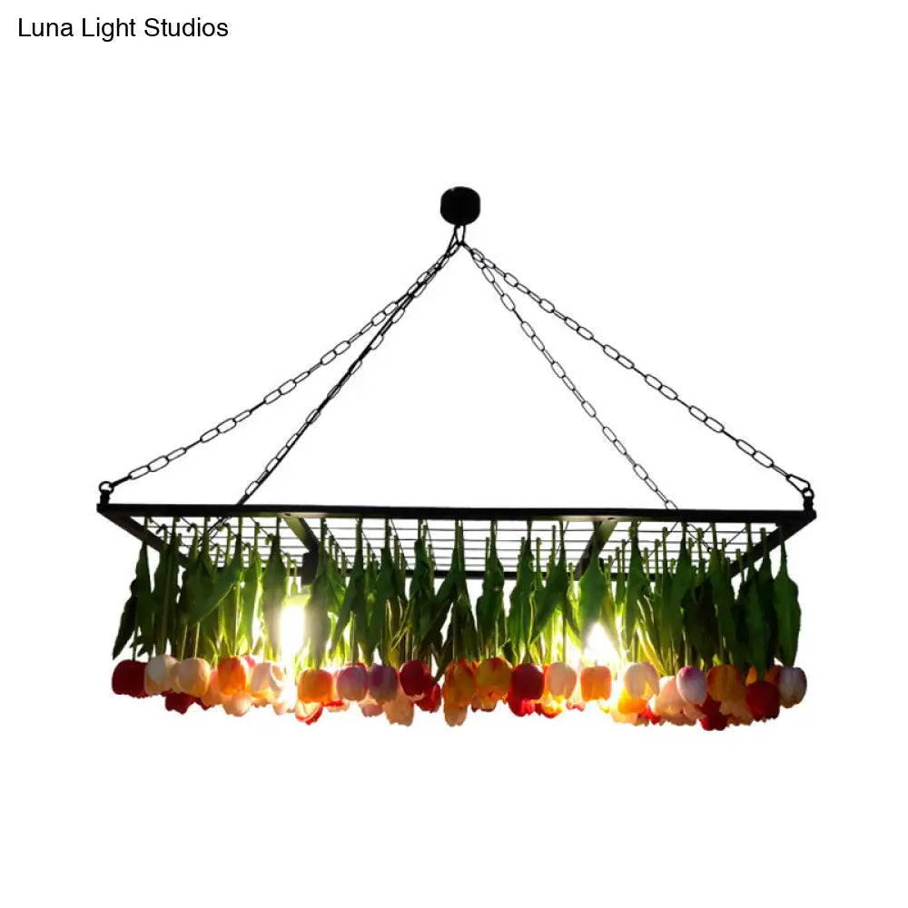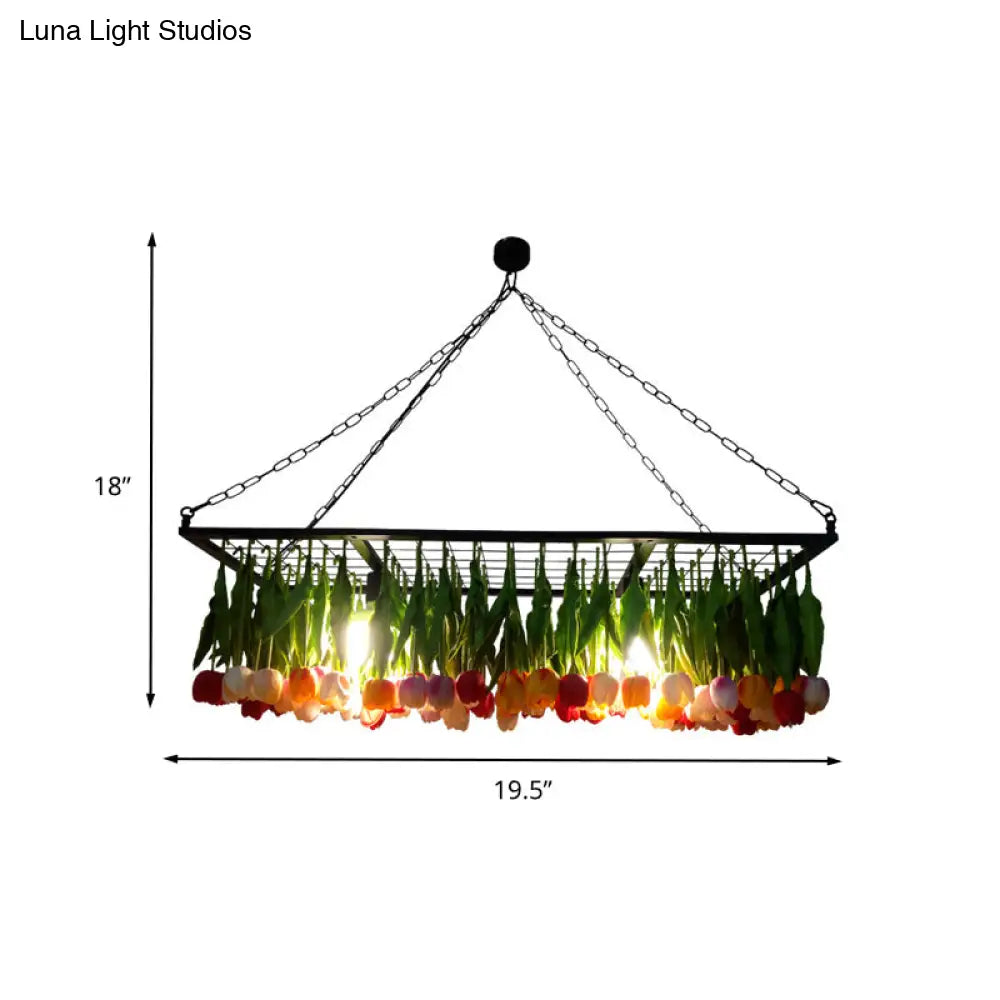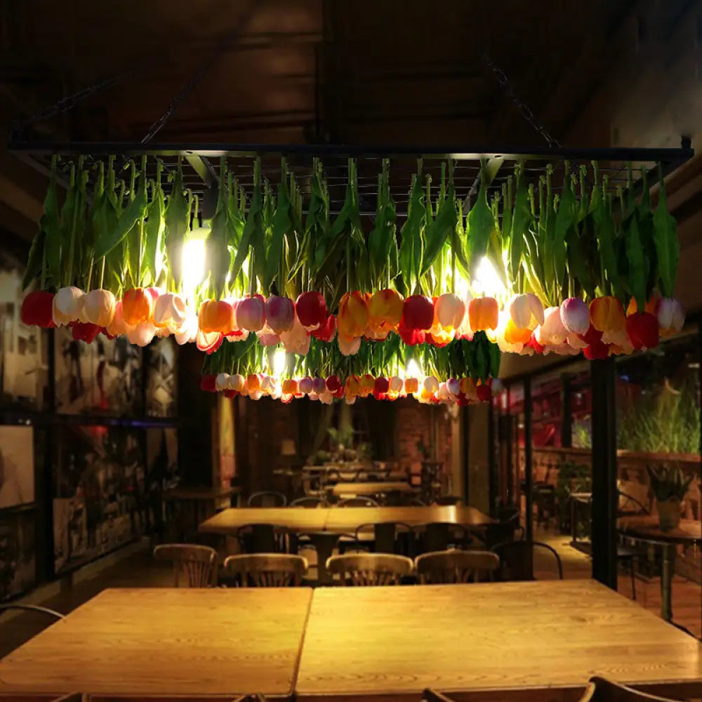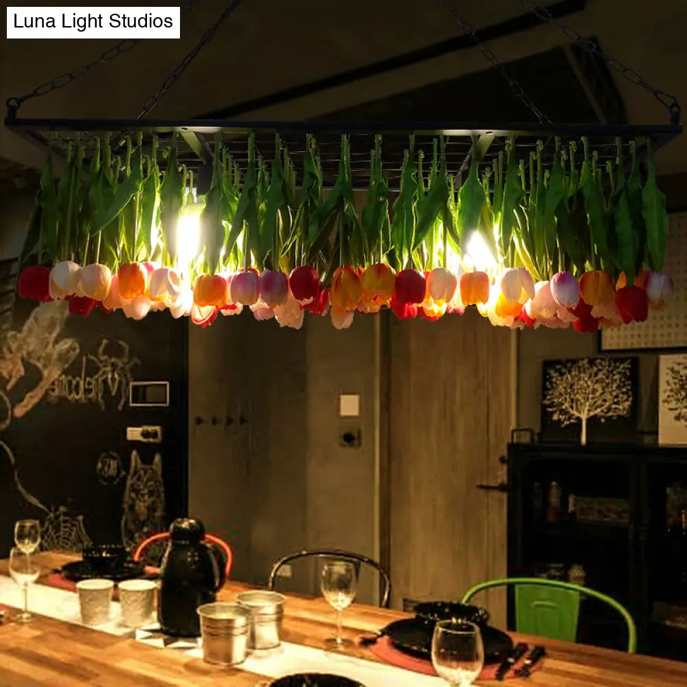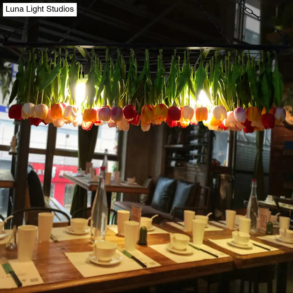 ثريا صناعية معدنية من ديكوربايتس™ - ثريا توليب خضراء بثلاث مصابيح LED للمطاعم