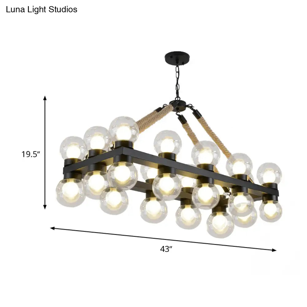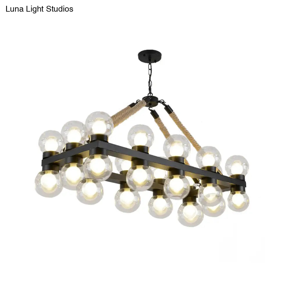 ثريا جزيئية سوداء بتصميم صناعي من DecorBites™ مزودة بـ 24 مصباحًا زجاجيًا شفافًا لغرفة الطعام أو سقف الجزيرة