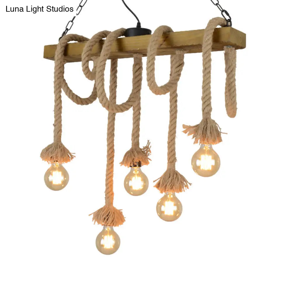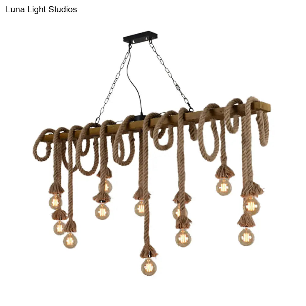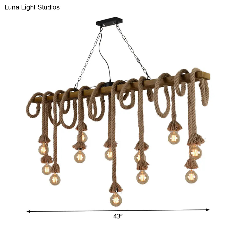 ثريا جزيرة خشبية بيج بتصميم صناعي من DecorBites™ - مصباح معلق خطي بثمانية مصابيح لغرفة الطعام