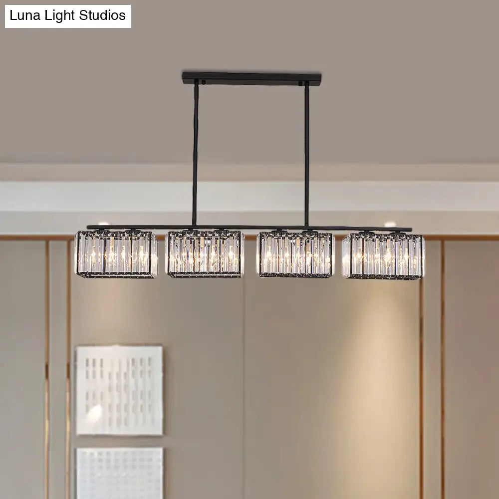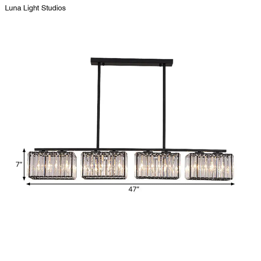 هذه الثريا الأنيقة والعصرية، ذات الظل المكعبي، والمعلقة على شكل جزيرة، بأربعة رؤوس وثمانية رؤوس، مصنوعة من الكريستال الشفاف باللون الأسود، تُعدّ إضافة مثالية لأي منزل. تصميمها العصري والمميز يجعلها مثالية لأي مساحة معيشة.
