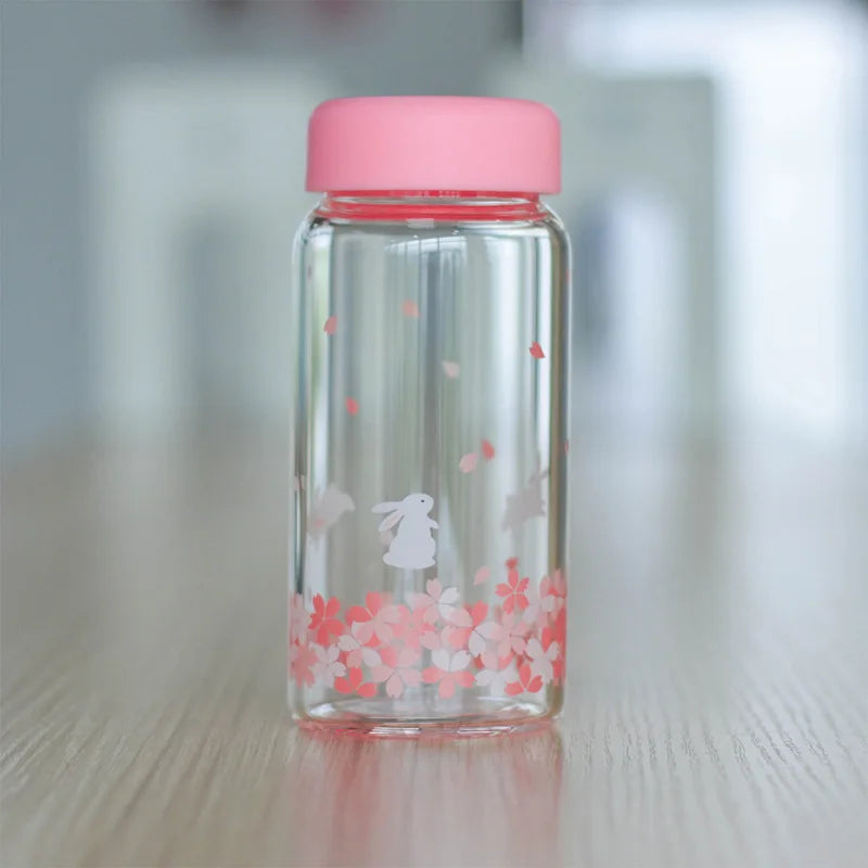 زجاجة مياه زجاجية من ديكوربايتس™ كاواي ساكورا، 310 مل، بتصميم حيوان كرتوني لطيف