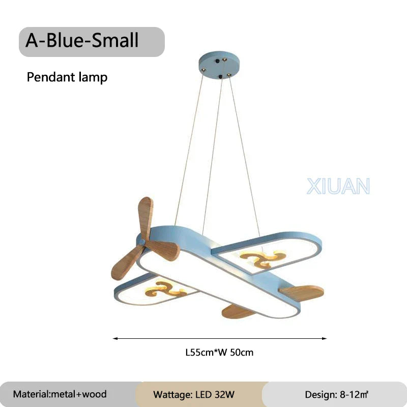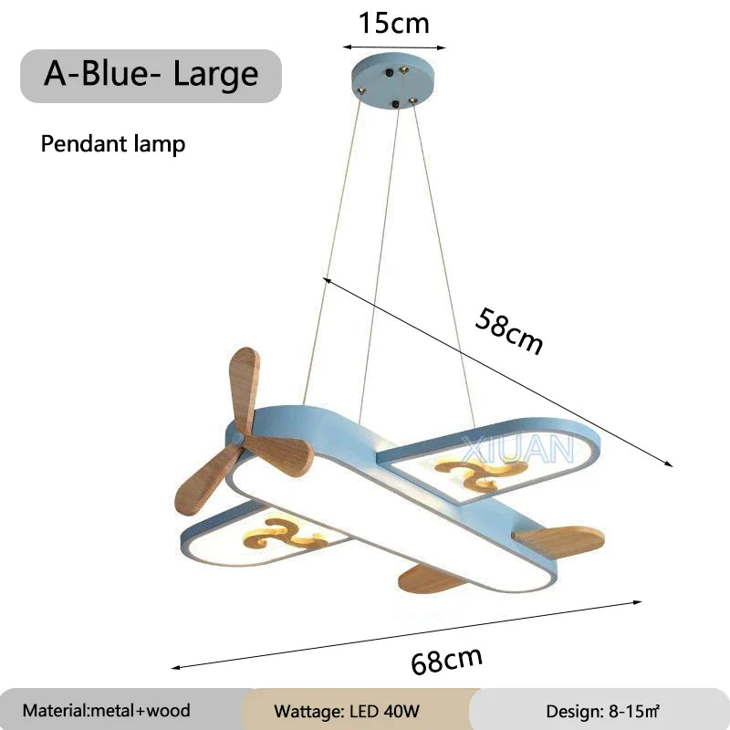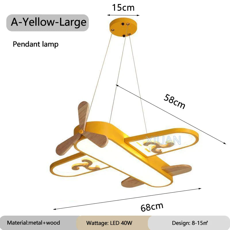 ديكوربايتس™ مصابيح معلقة على شكل طائرة للأطفال مصنوعة من الخشب والمعدن ومصابيح LED لغرف الأطفال والمدارس