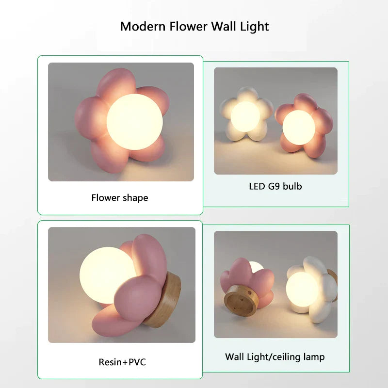 ديكوربايتس™ مصباح حائطي للأطفال على شكل زهرة من الراتينج LED G9 لمبة بيضاء وردية اللون لديكور غرفة النوم الإبداعي
