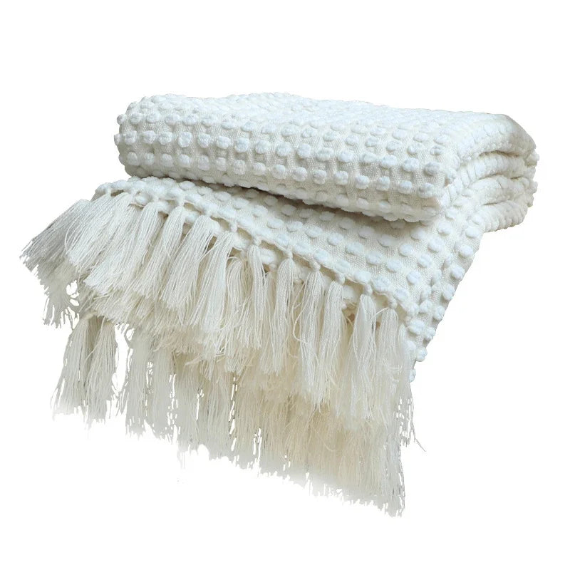 قم بترقية محيطك باستخدام بطانية Knitted Nordic White Casual Blanket - خيارك المفضل للراحة والأناقة والرقي.