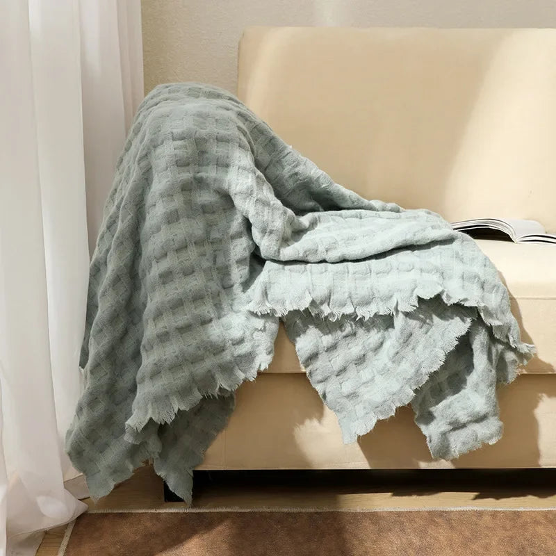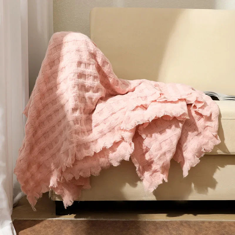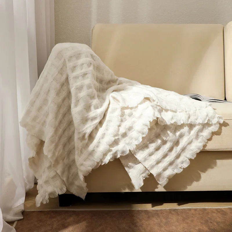 نقدم لكم بطانية الوافل المحبوكة، إضافة أنيقة ومتعددة الاستخدامات لديكور منزلك. مصنوعة من مواد عالية الجودة، هذه البطانية/بطانية المناشف من الدرجة الأولى مصممة لإضفاء لمسة جمالية على مساحة معيشتك مع توفير لمسة دافئة تناسب جميع الفصول.