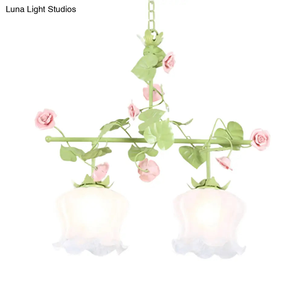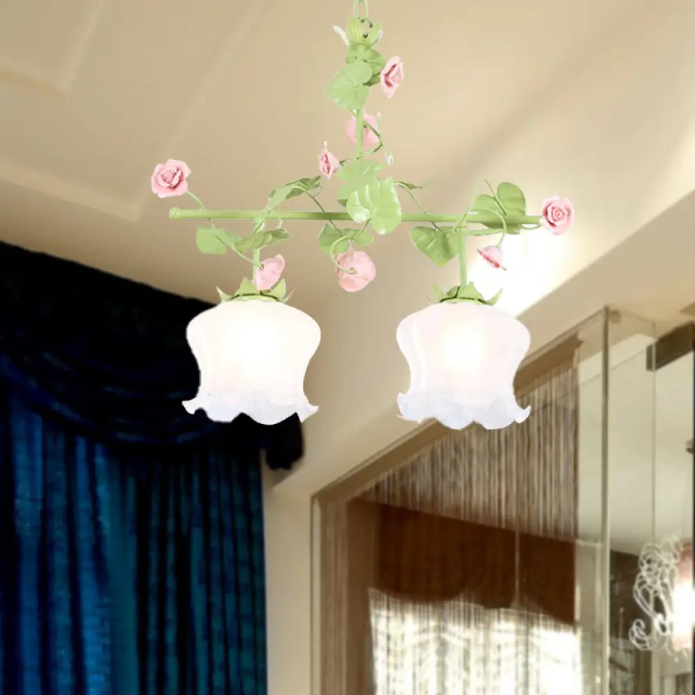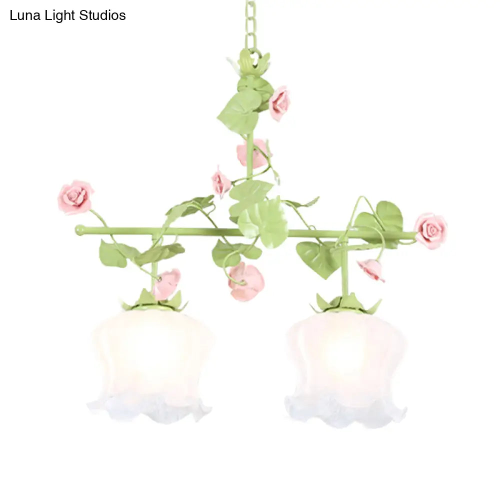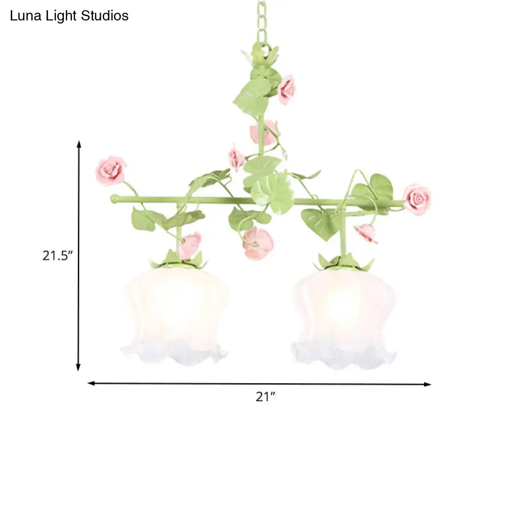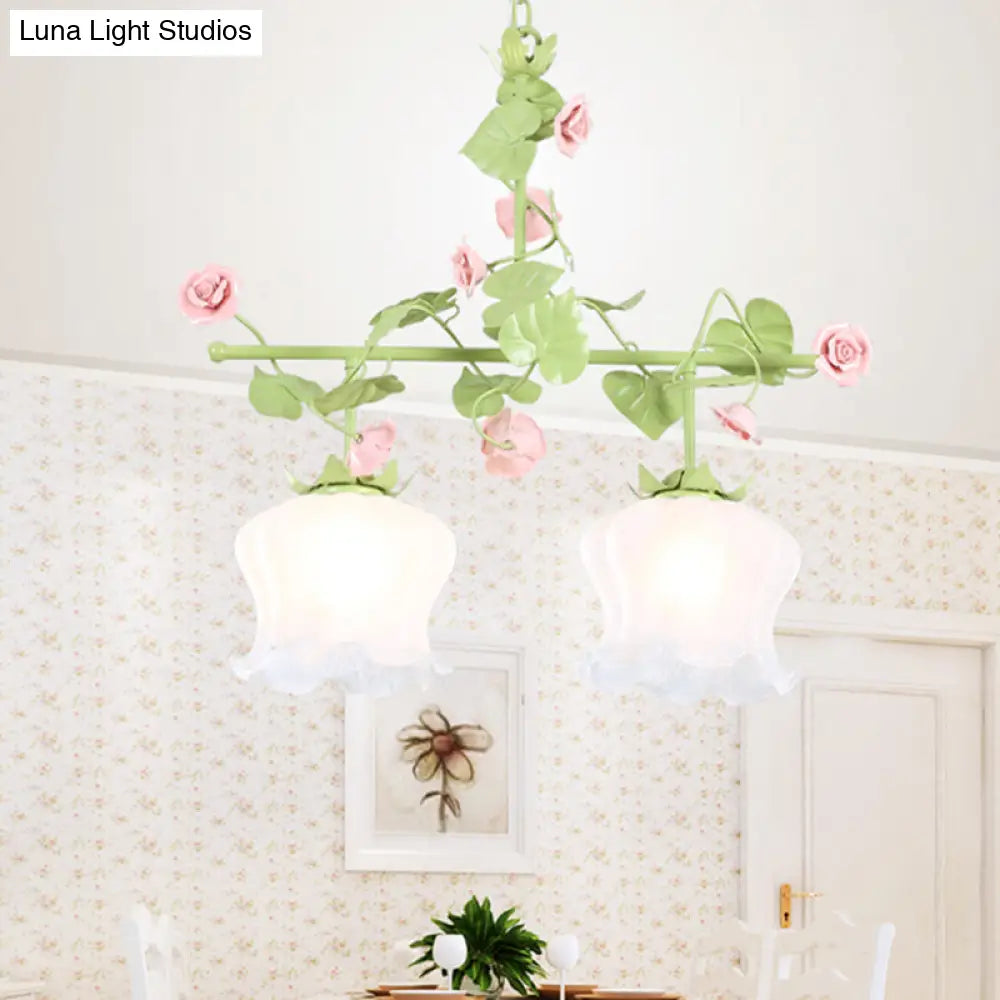 ديكوربايتس™ وحدة إضاءة معلقة للحديقة الكورية مصنوعة من الزجاج الأبيض وتصميم الأزهار