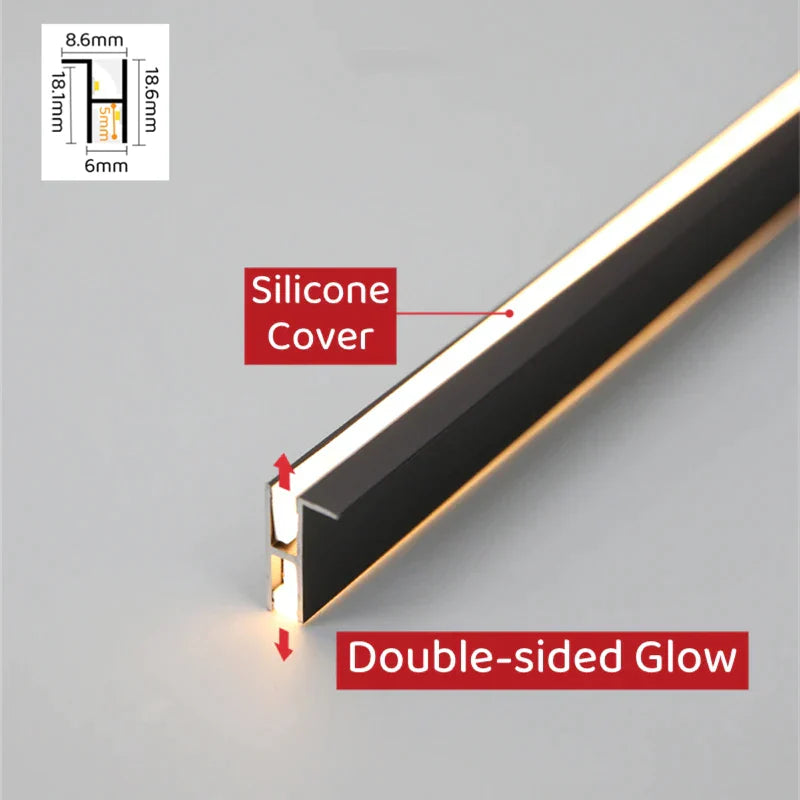لونه الرمادي العصري وشريطه الألومنيومي الخطي الخفي LED يُضفيان أجواءً راقية وأنيقة. تُضفي ميزة التوهج على الوجهين وشريط إضاءة LED الخلفي لمسةً من الأناقة على أي مساحة. يُعد هذا المصباح مثاليًا لرفوف الكتب والخزائن والأرفف، حيث يُوفر حلاً إضاءةً فريدًا وجذابًا.