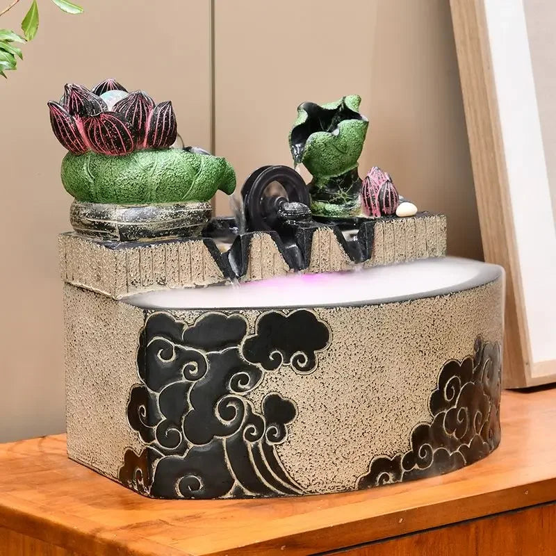 ديكوربايتس™ - ميزة مائية على شكل ورقة لوتس: عجلة دوران حوض السمك فينج شوي للاحتفال بافتتاح منزل جديد