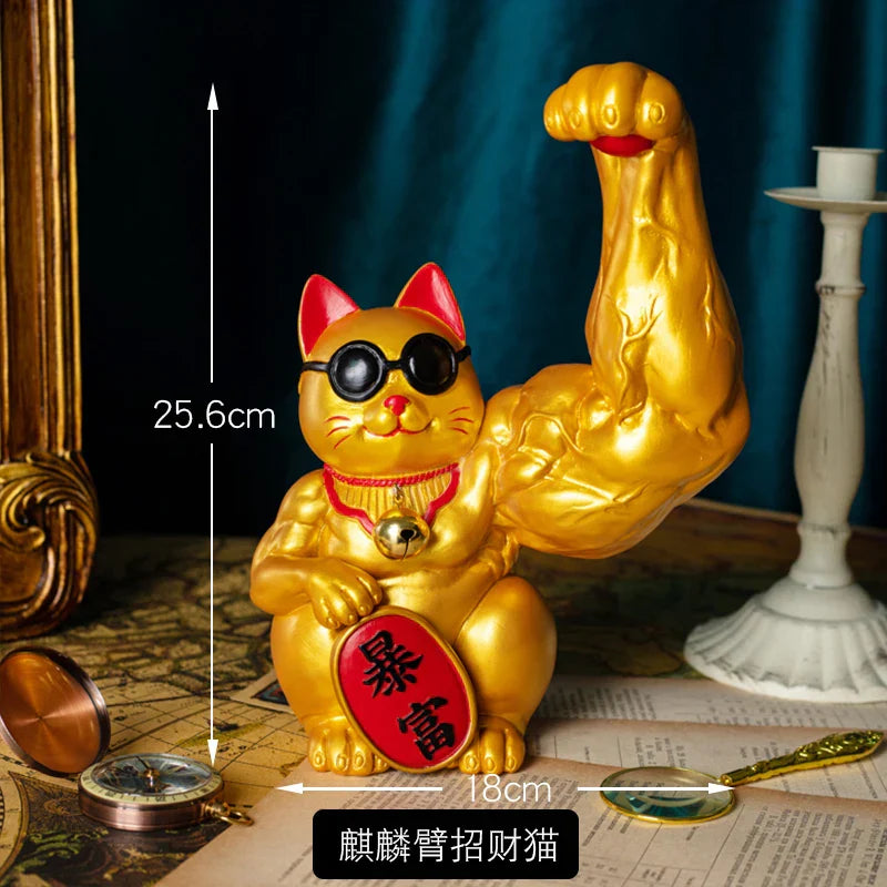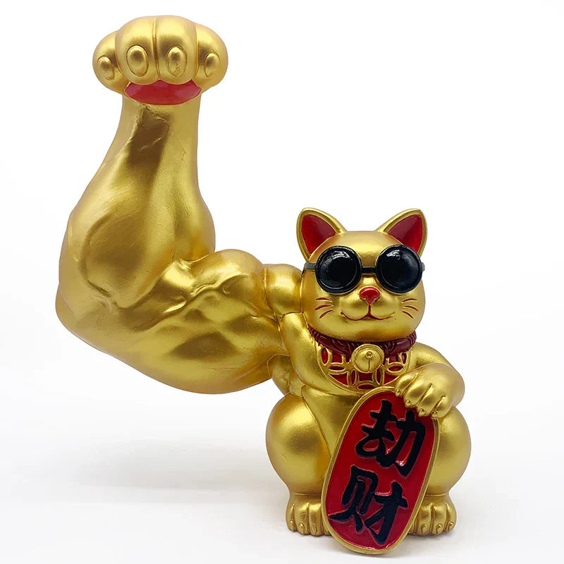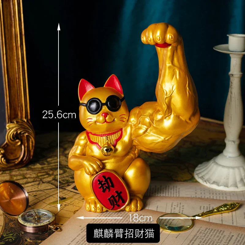 ديكوربايتس™ تمثال القط المحظوظ: ذراع عضلية إبداعية بنمط فنغ شوي لديكور المنزل والمكتب والمتجر