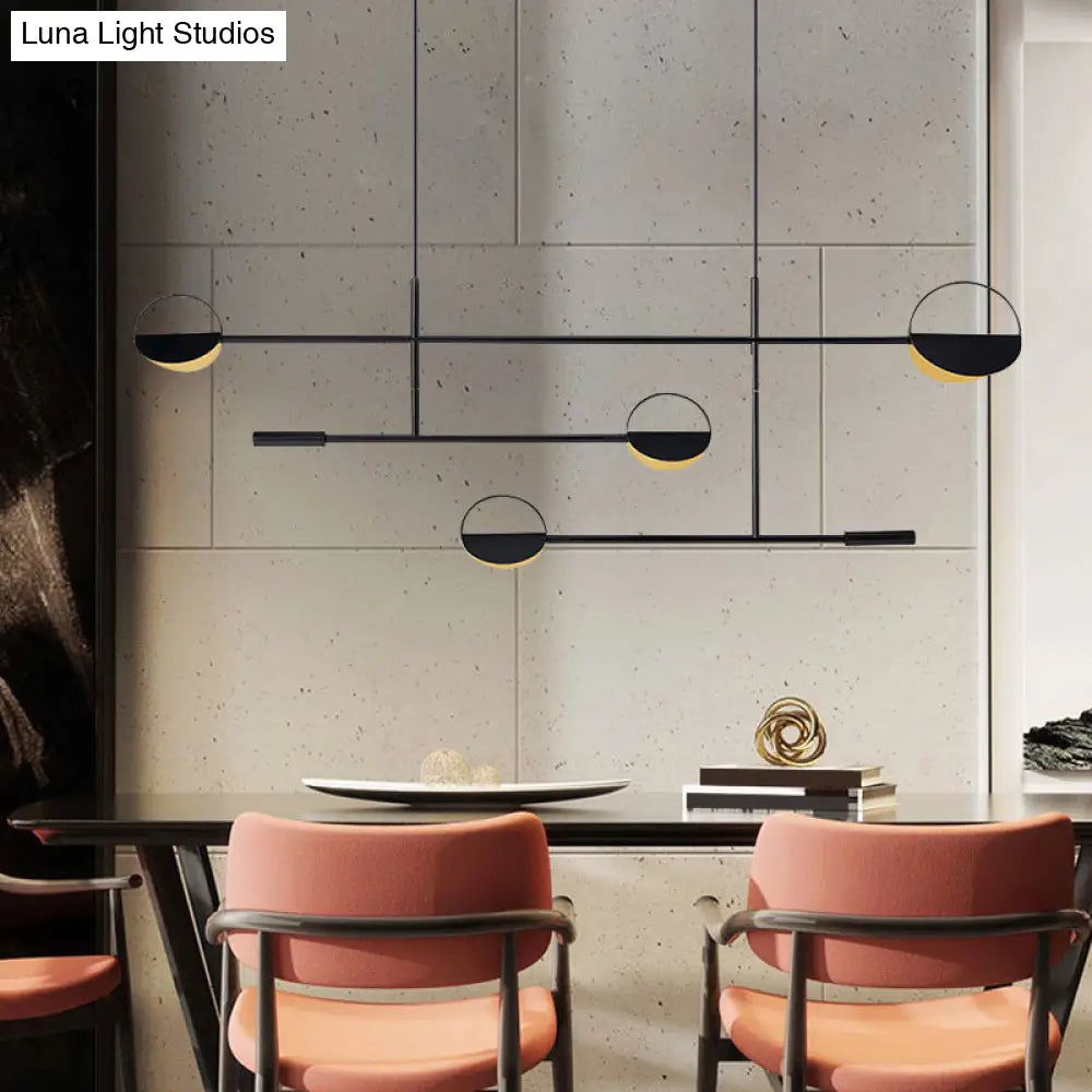 هذا المصباح المعلق البسيط ثلاثي الأذرع مثالي لمنزل عصري. تصميمه المعدني الأنيق يضفي عليه لمسةً من الفخامة، كما يضفي عليه لونه الأسود الذهبي لمسةً من الأناقة. مثالي لغرفة الطعام أو المطبخ أو جزيرة المنزل. يبلغ عرض المصباح 51 بوصة وارتفاعه 16 بوصة، ويحتوي على أربع لمبات. المصابيح من نوع SMD، ويمكن أن تكون إما LED أو متوهجة أو فلورسنت. يتوافق المصباح مع جهد 220-240 فولت أو 110-120 فولت.