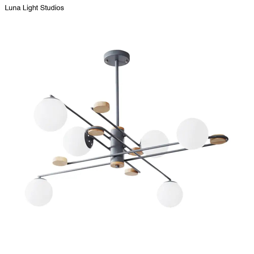 ثريا ديكوربايتس™ الحديثة ذات 6 رؤوس باللونين الأسود والرمادي لغرفة المعيشة مع زجاج حليبي
