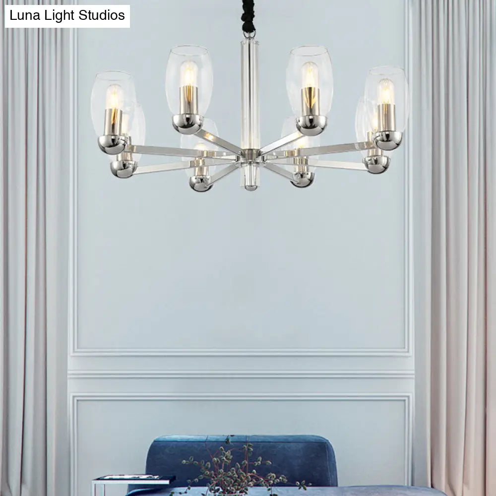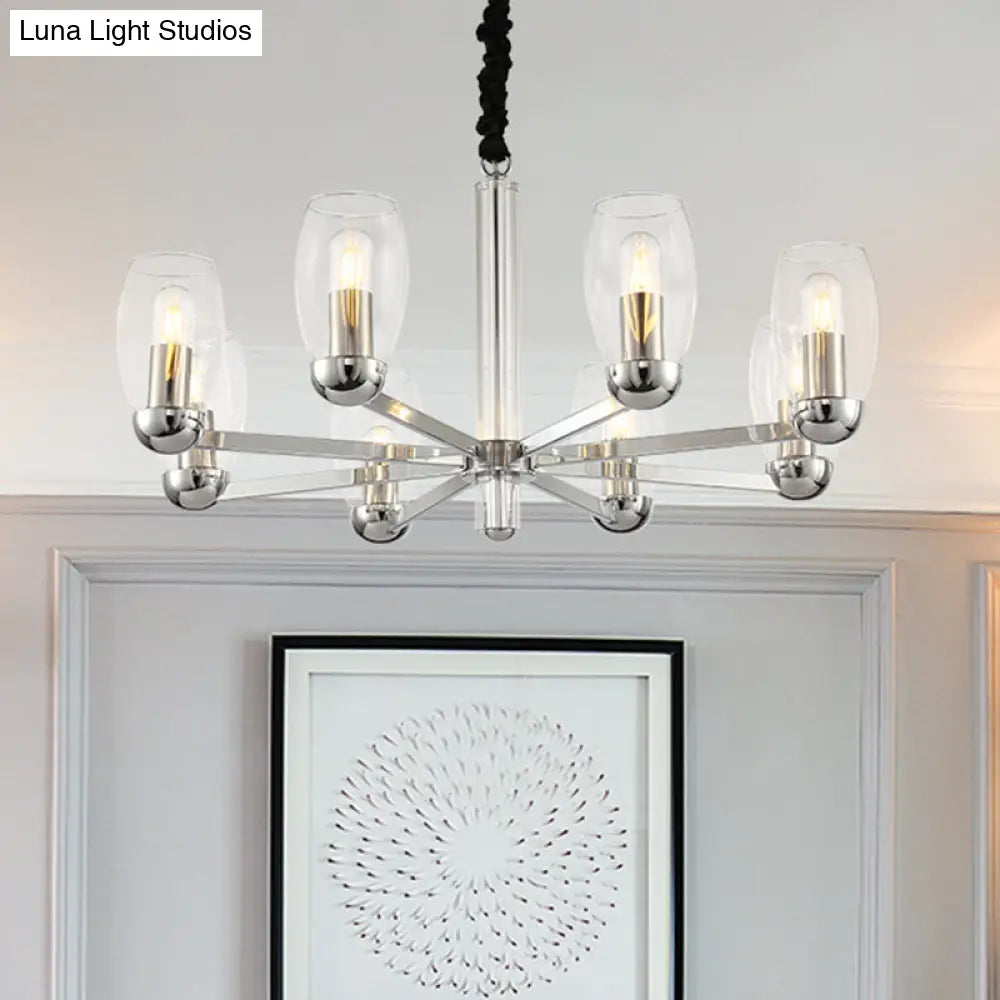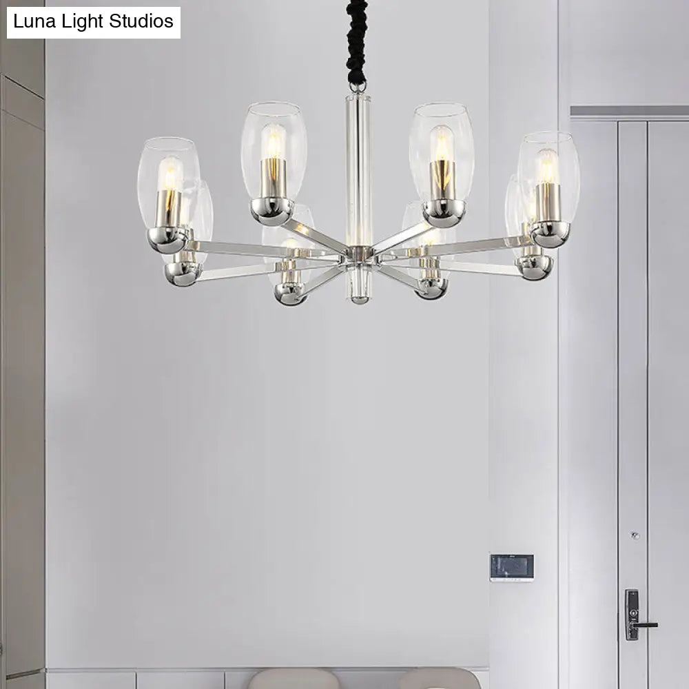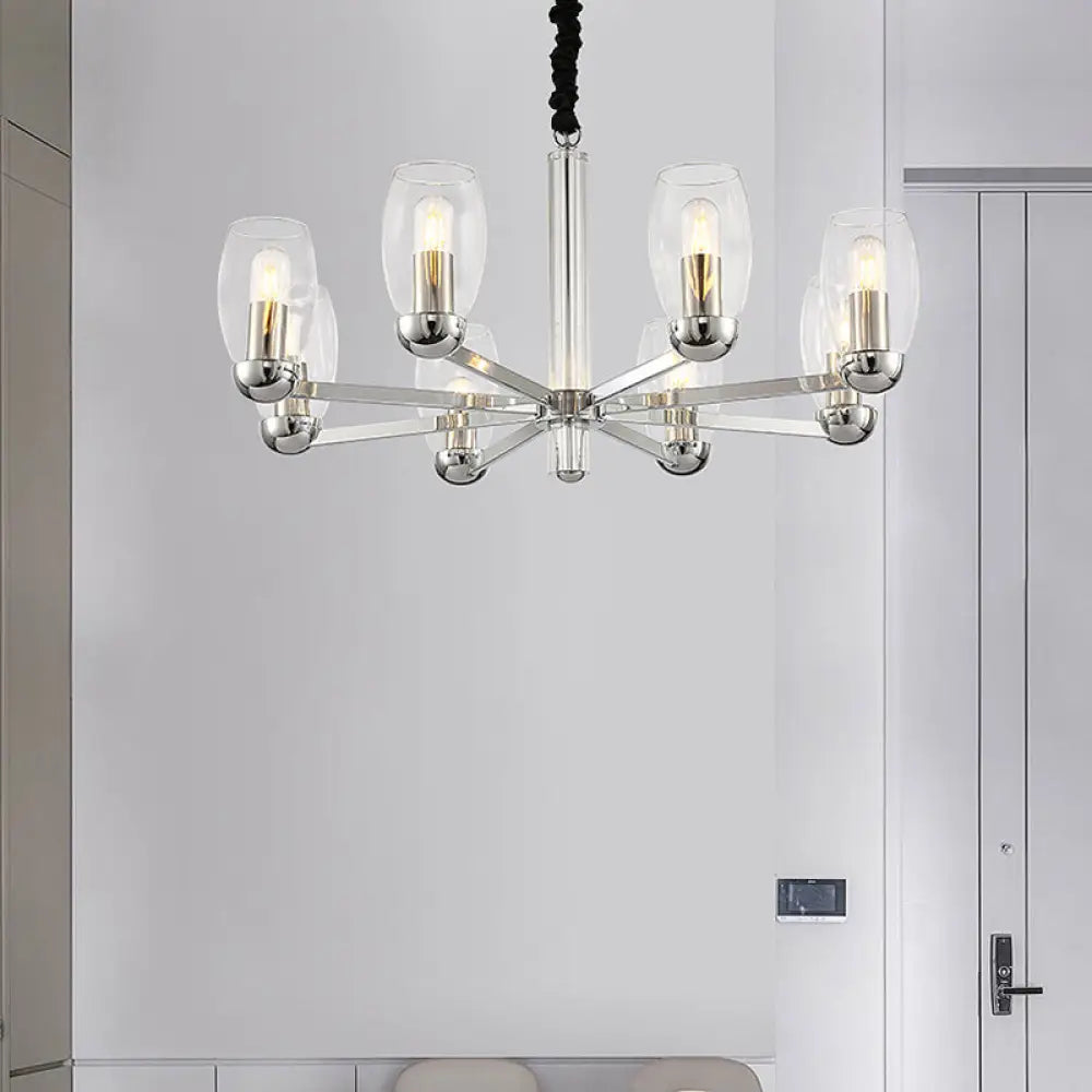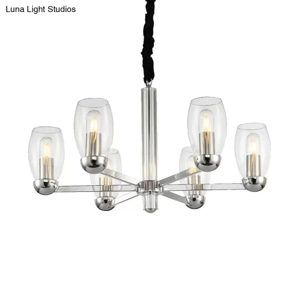 ثريا شموع زجاجية شفافة حديثة بستة رؤوس من DecorBites™: وحدة إضاءة سقفية من الكروم مع سلسلة قابلة للتعديل