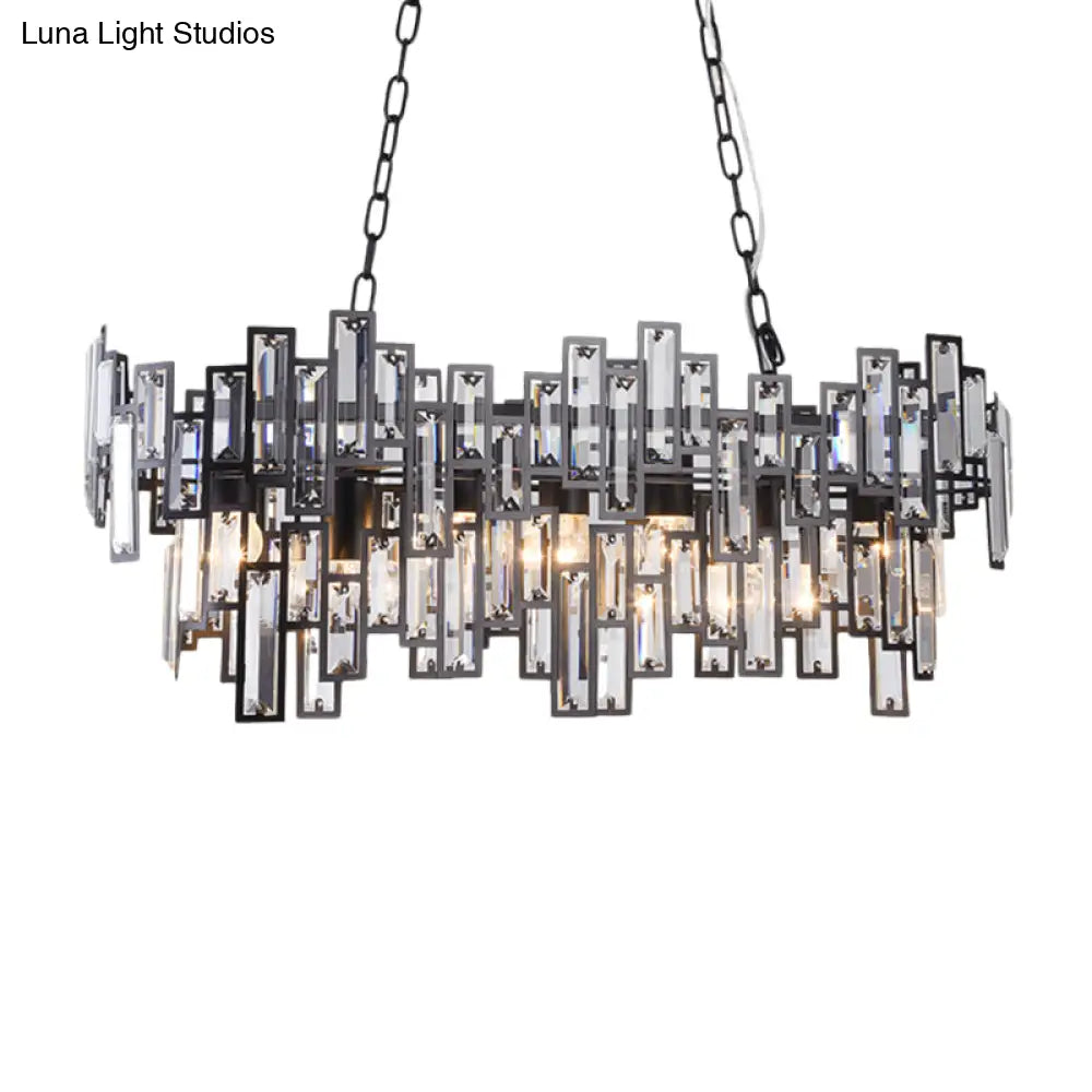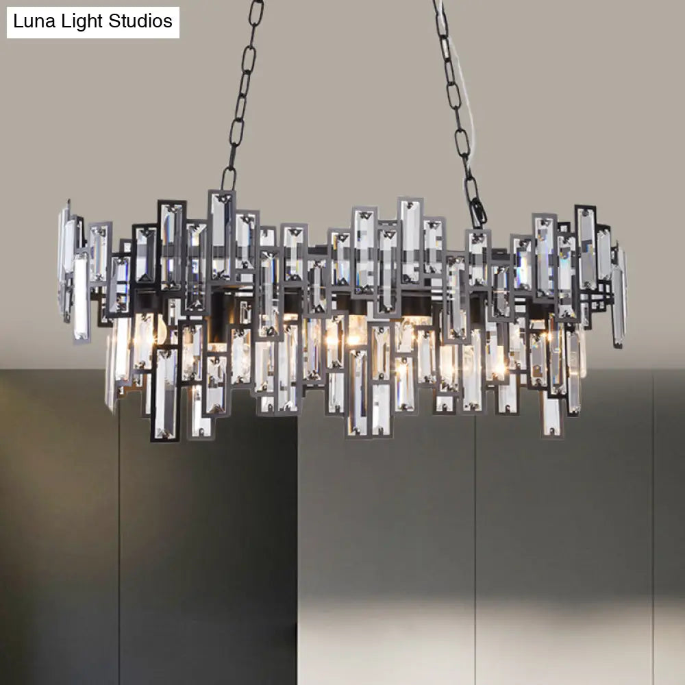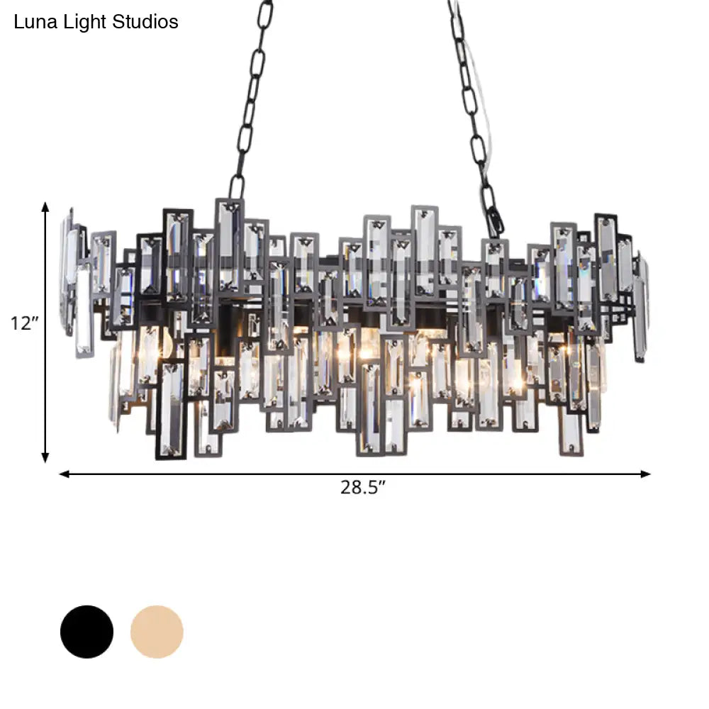 ديكوربايتس™ مصباح معلق بيضاوي عصري باللونين الأسود والذهبي مع لمسات من الكريستال وإضاءة الجزيرة